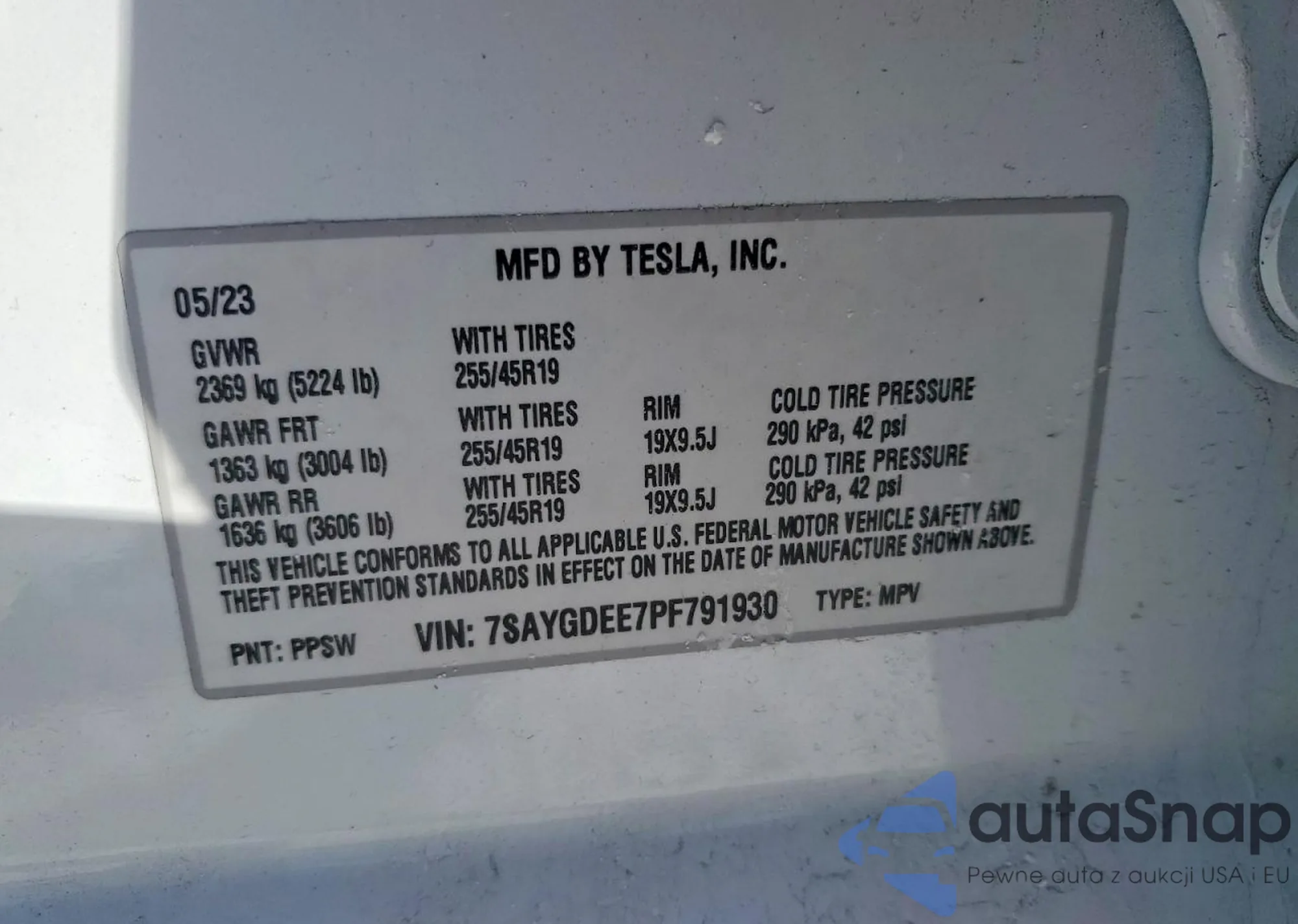 • VIN 7SAYGDEE7PF791930