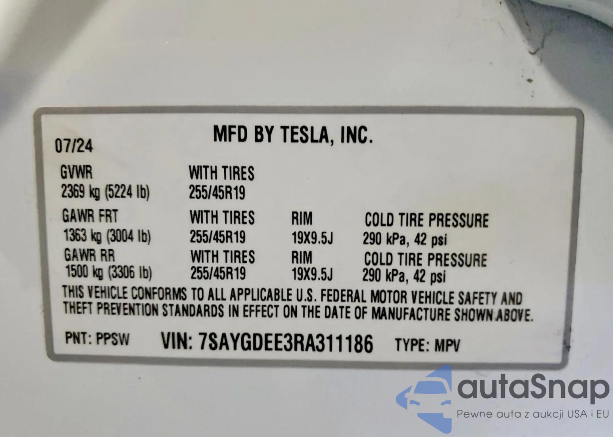 2024 Tesla Model Y z USA, uszkodzony, nr VIN 7SAYGDEE3RA311186