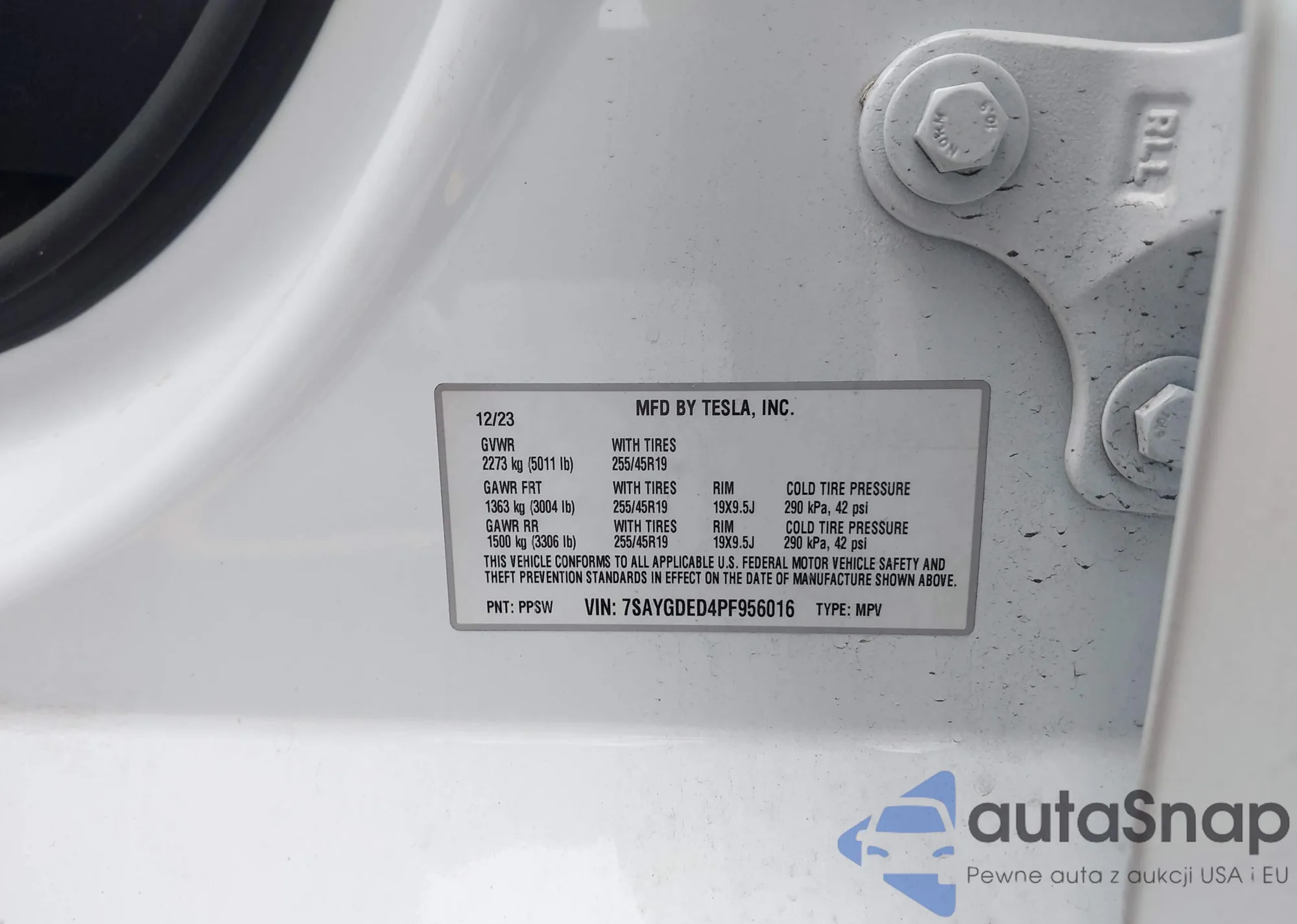 2023 Tesla Model Y Rwd z USA, uszkodzony, nr VIN 7SAYGDED4PF956016