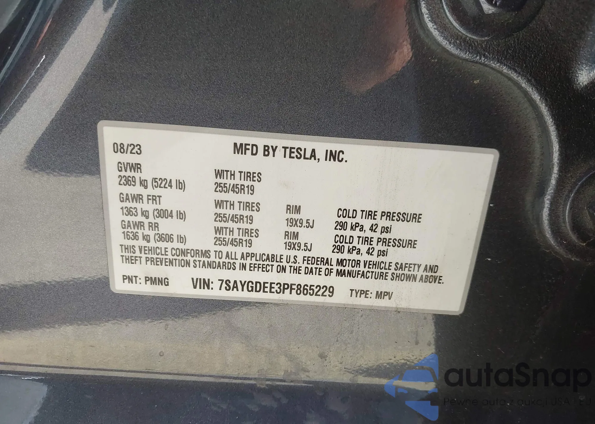 • VIN 7SAYGDEE3PF865229