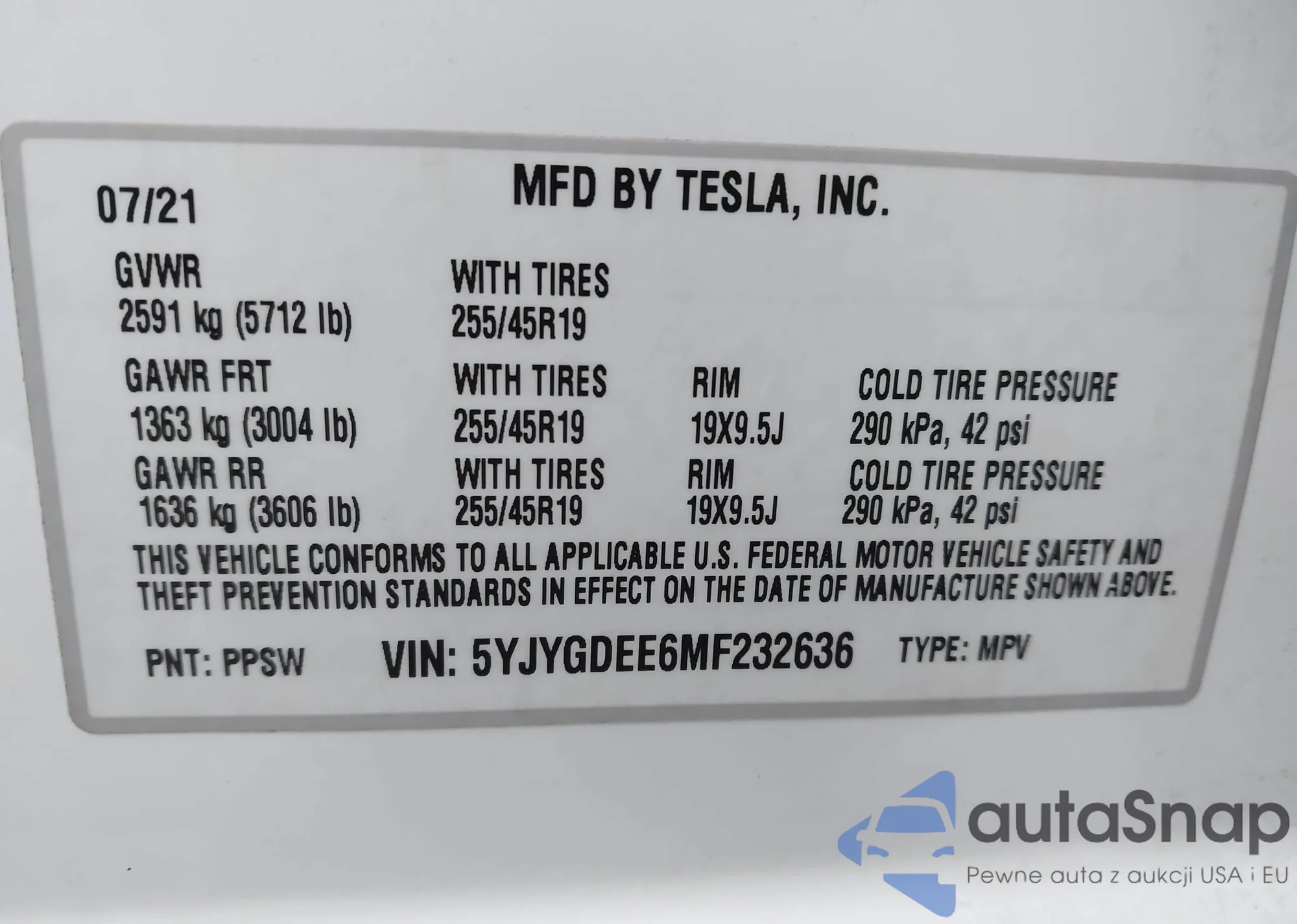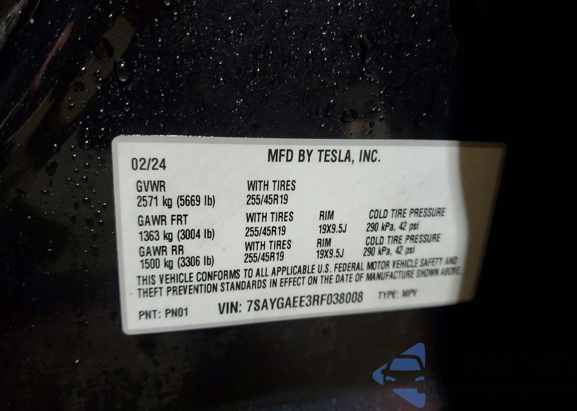 • VIN 5YJ3E1EA1PF438544
