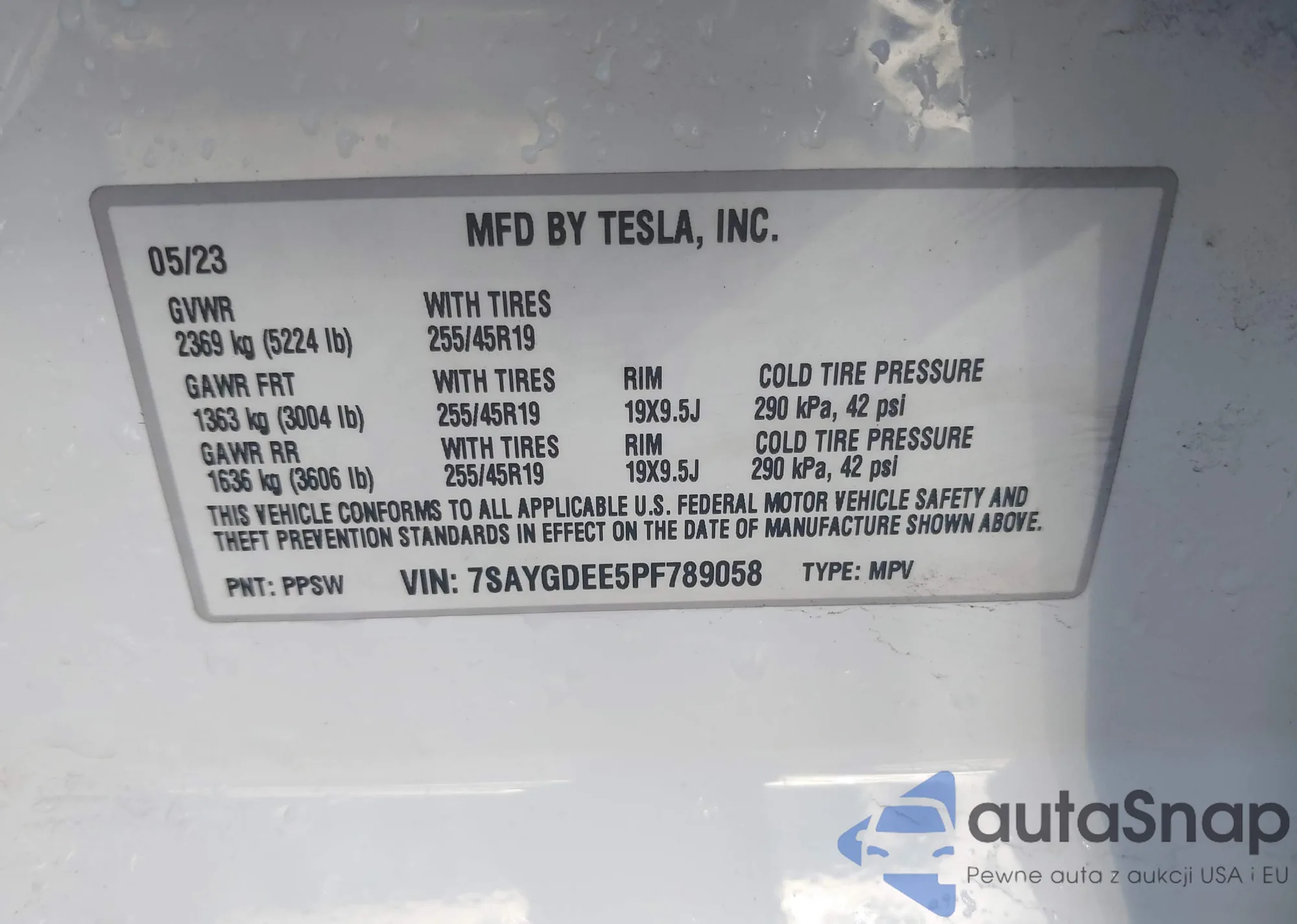 • VIN 7SAYGDEE5PF789058