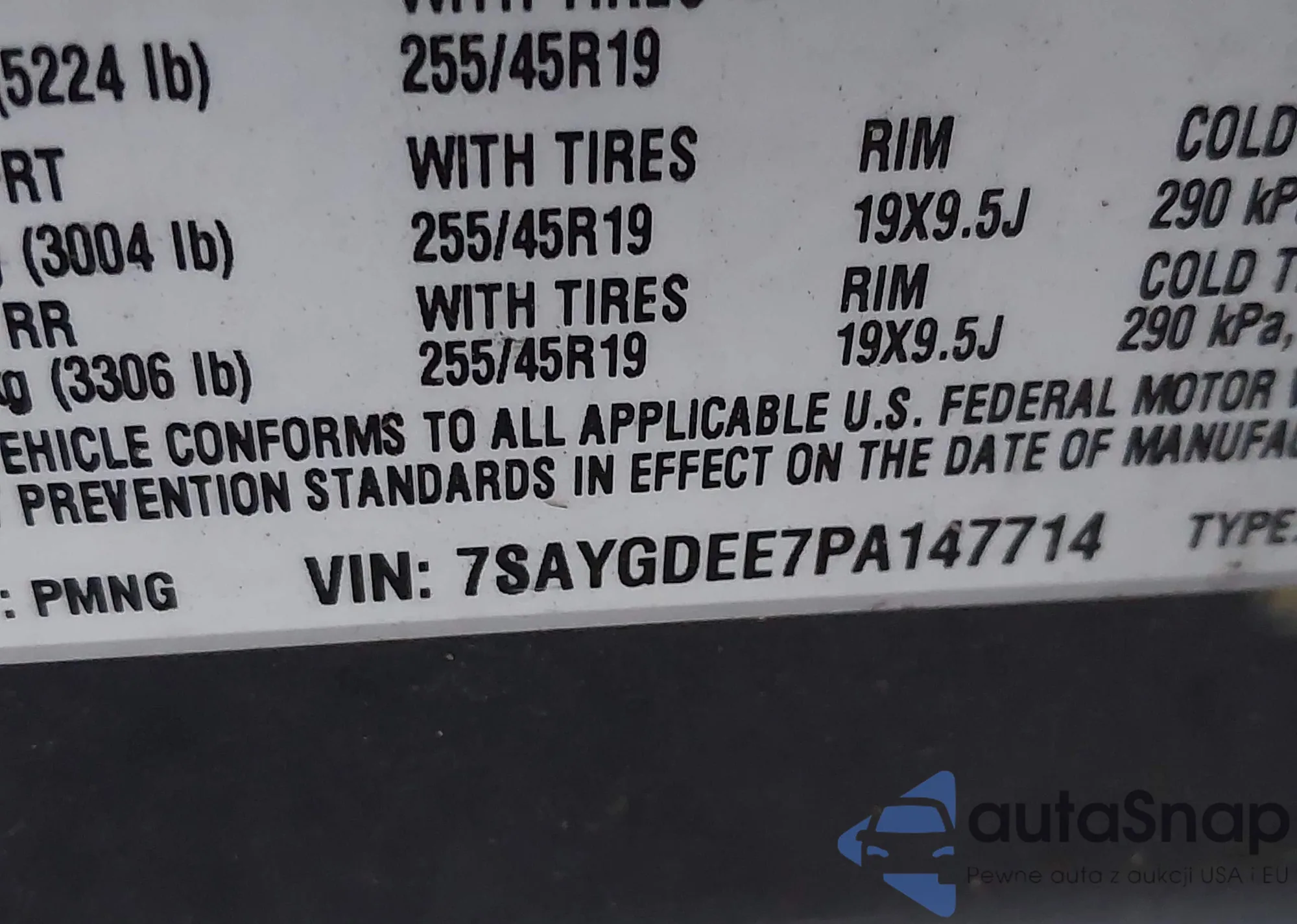 • VIN 7SAYGDEE7PA147714