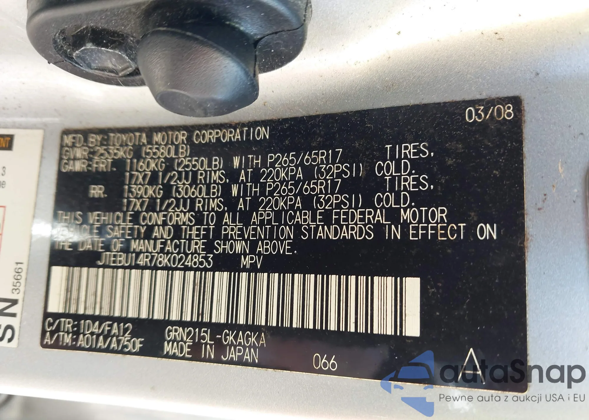 LOT: 44388231 VIN: JTEBU14R78K024853