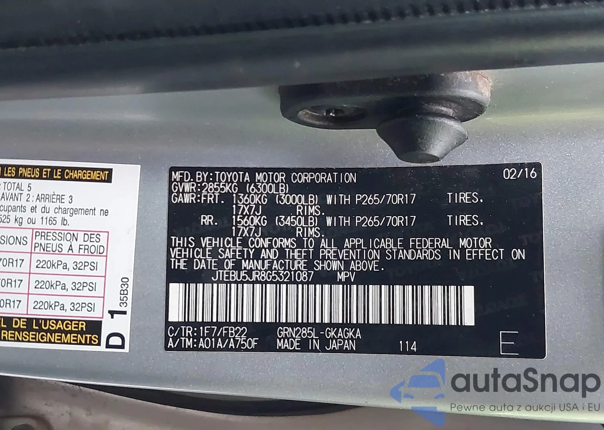 LOT: 44007603 VIN: JTEBU5JR8G5321087