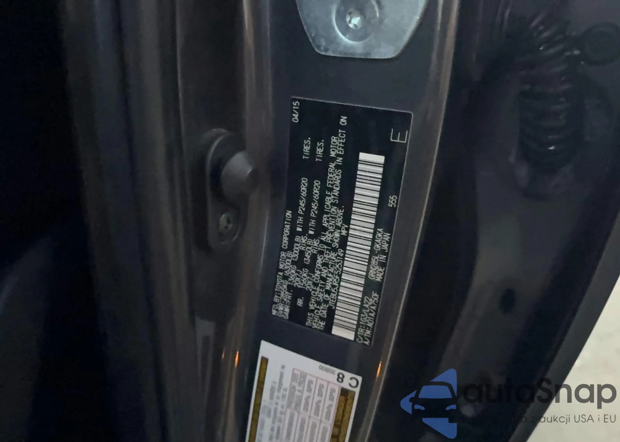 LOT: 72241194 VIN: JTEZU5JR3A5004808