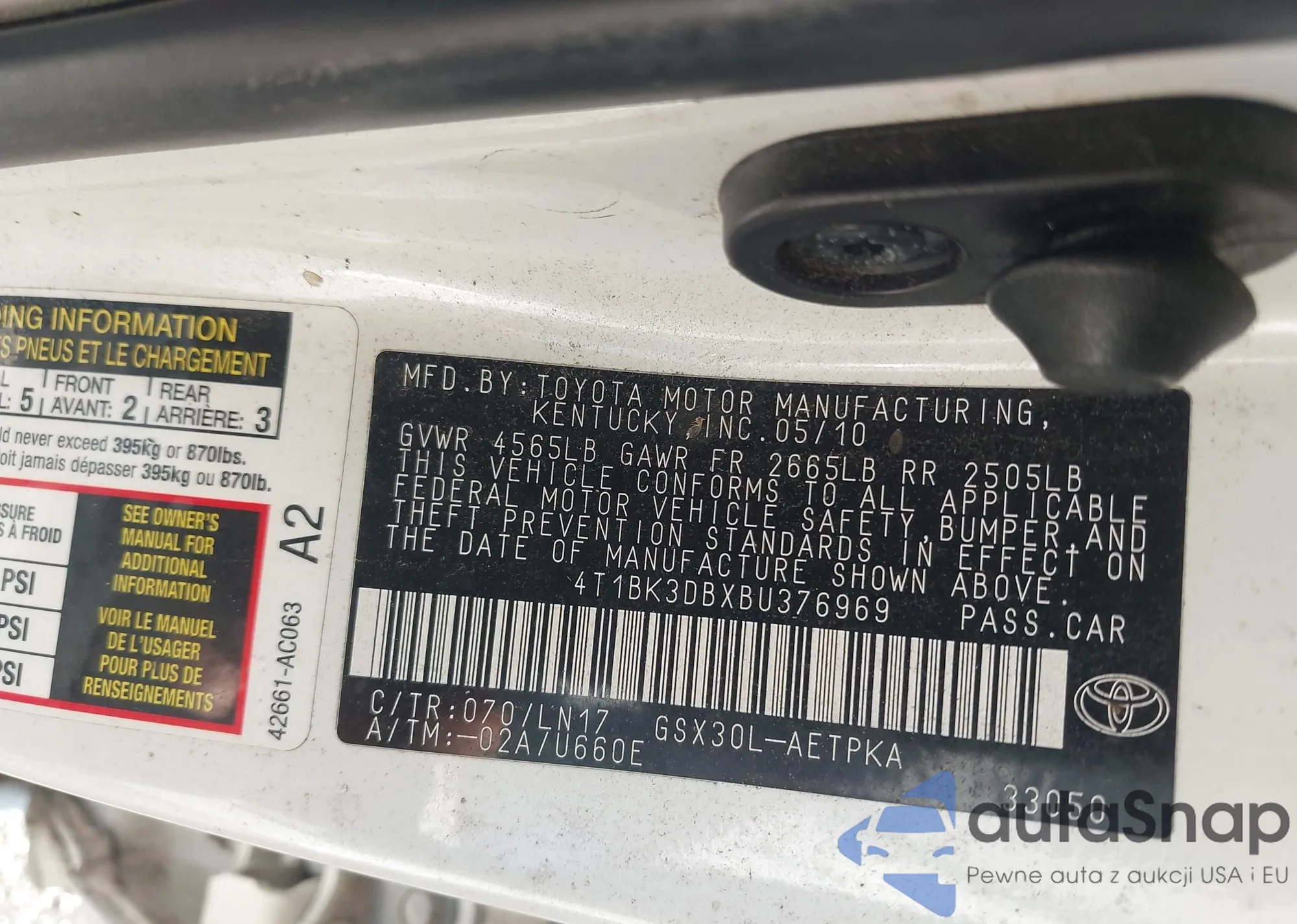 • VIN 4T1BK3DB9BU425871