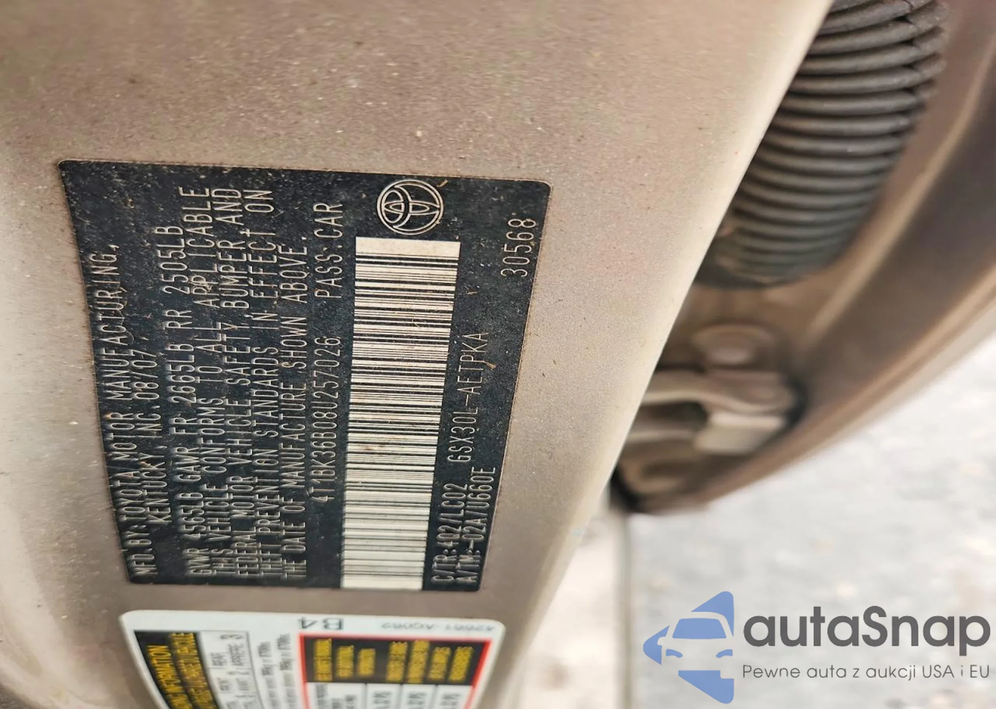 LOT: 73897465 VIN: 4T1BK36B47U207664