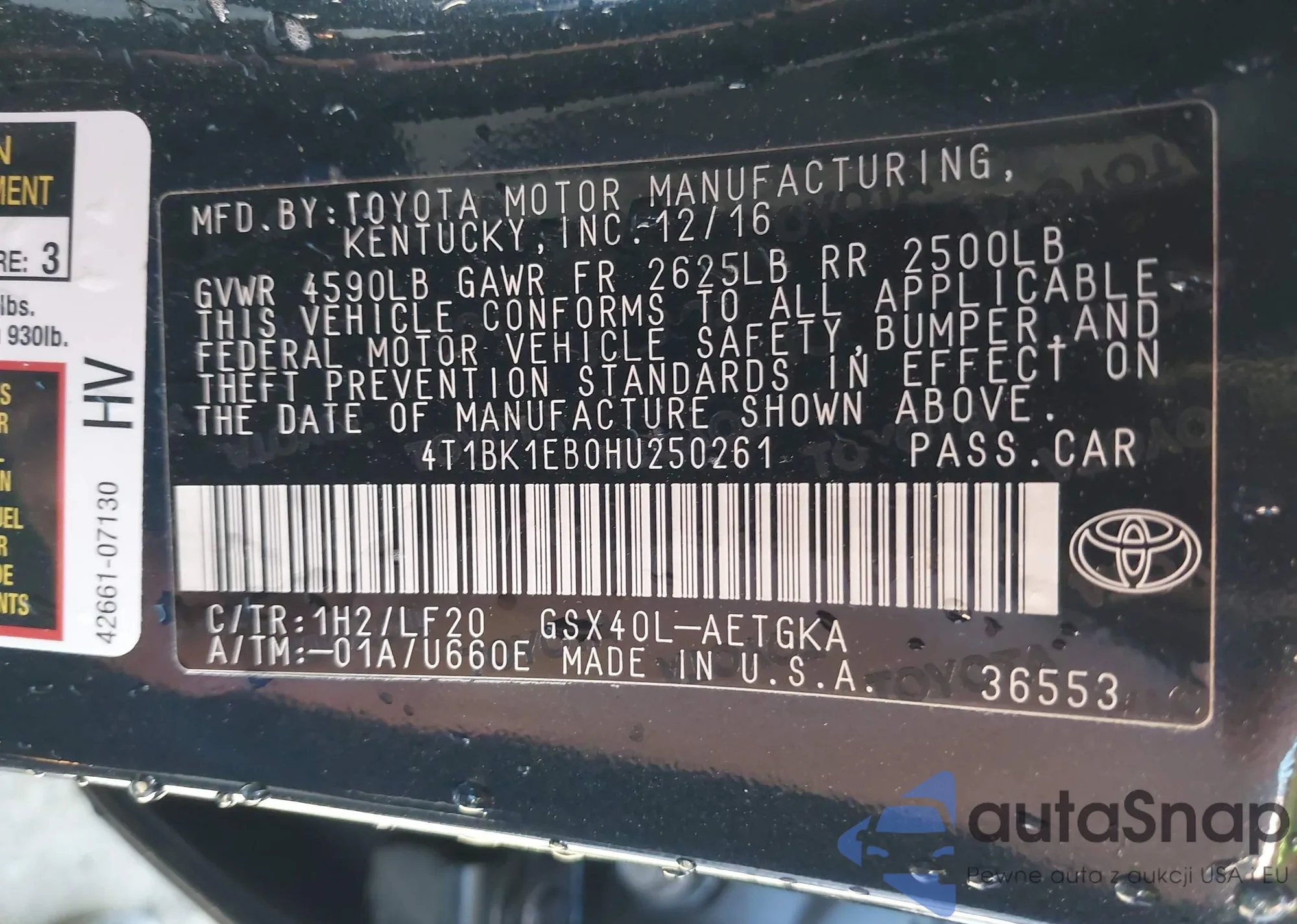 • VIN 4T1BK1EB0HU250261