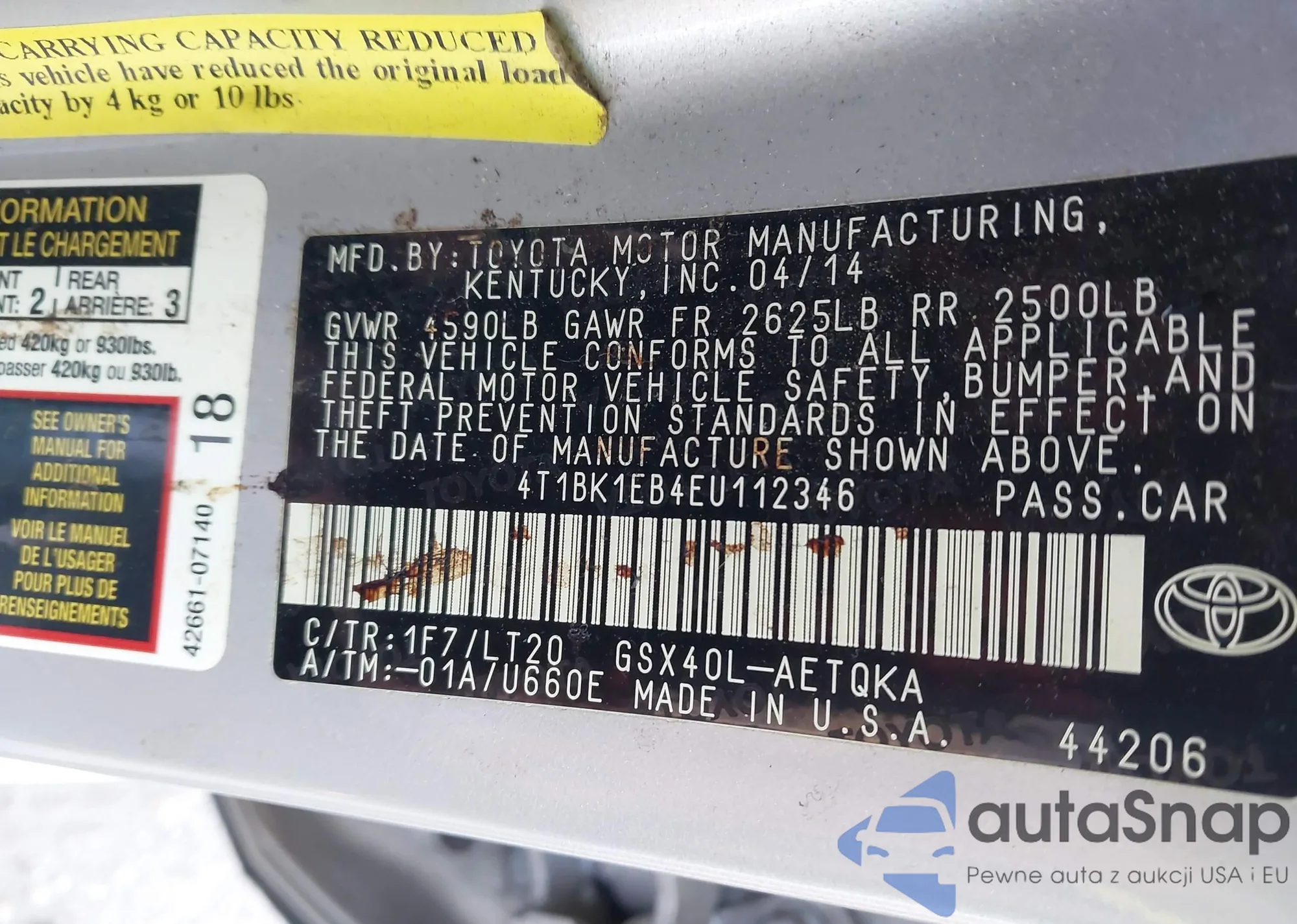 LOT: 44356815 VIN: 4T1BK1EB4EU112346