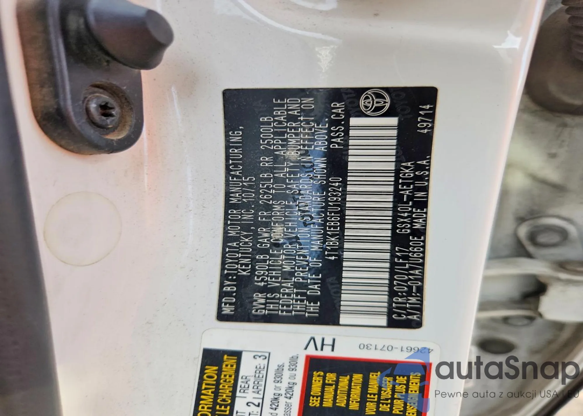 • VIN 4T1BK1EB6FU193240
