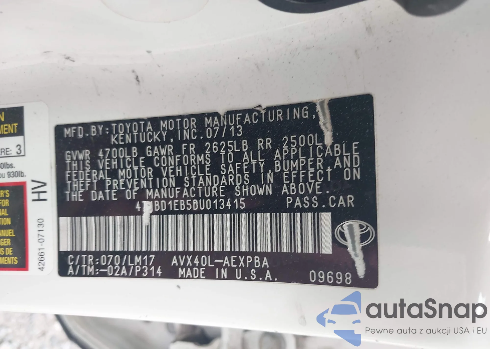• VIN 4T1BD1EB5DU013415