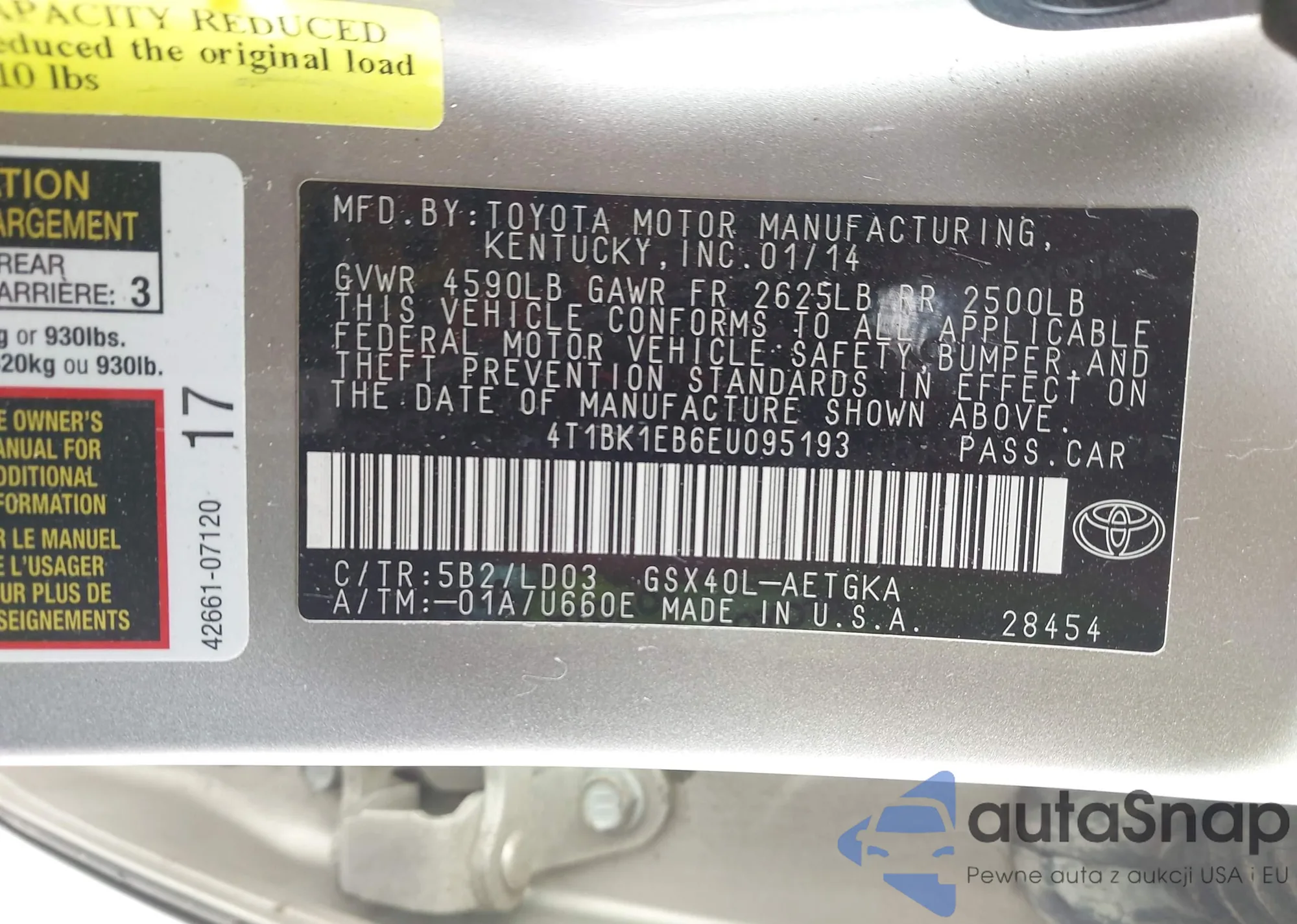 LOT: 44470378 VIN: 4T1BK1EB6EU095193