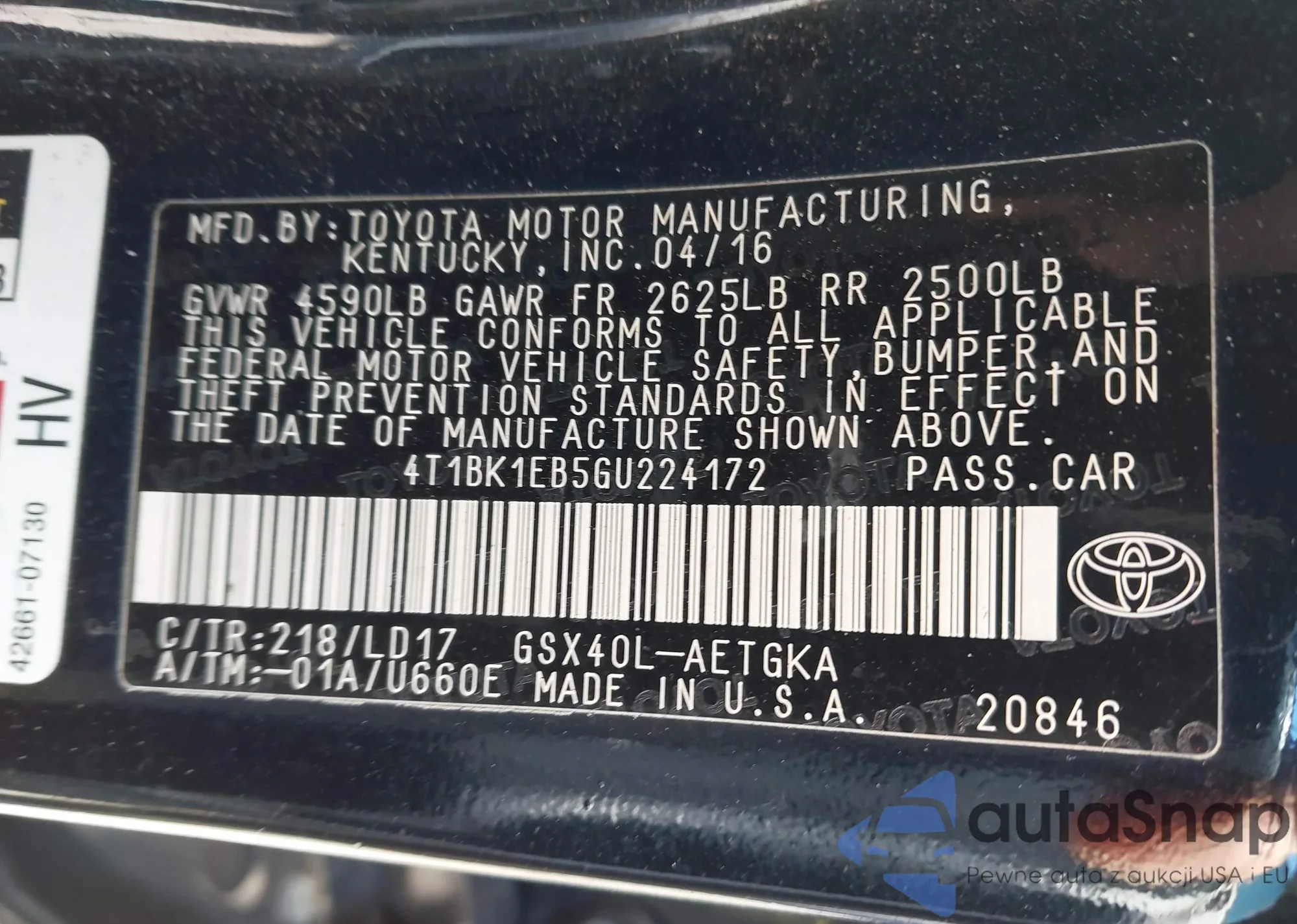• VIN 4T1BK1EB5GU224172