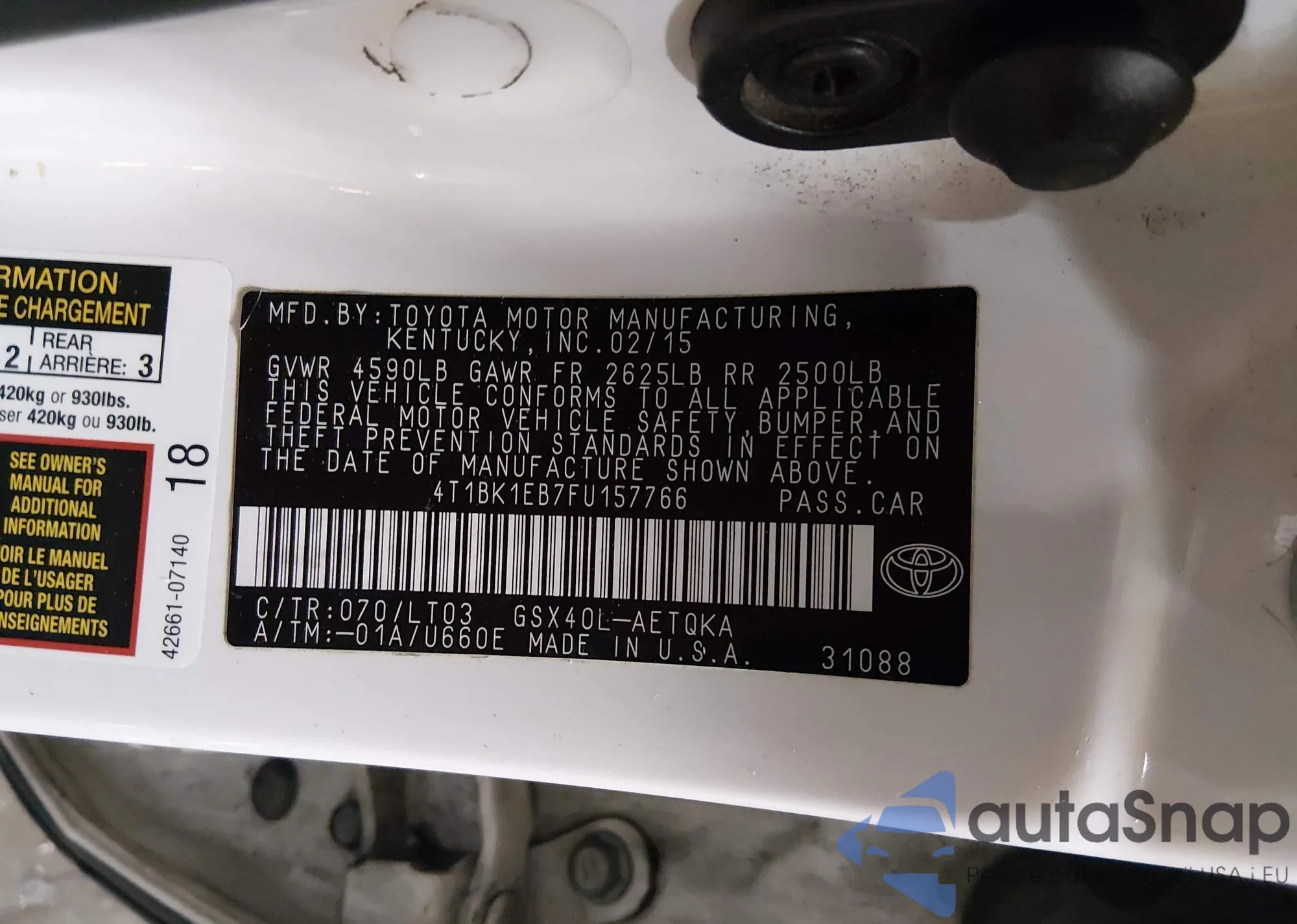 LOT: 44459238 VIN: 4T1BK1EB7FU157766
