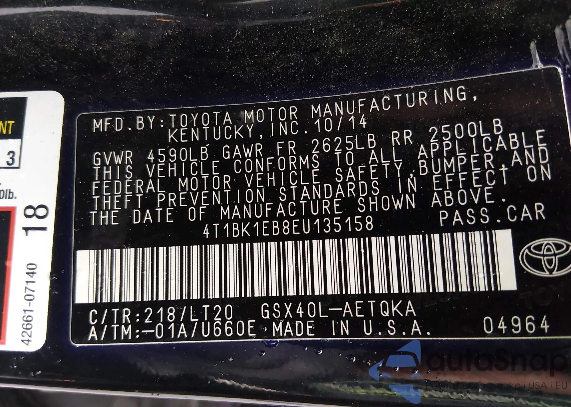 • VIN 4T1BK1EB8EU135158