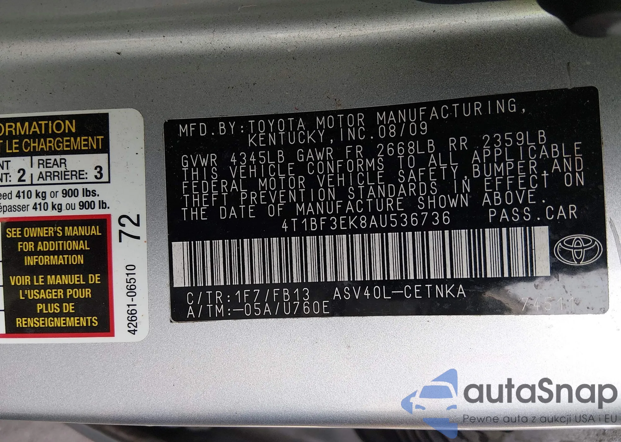 • VIN 4T1BF3EK8AU536736