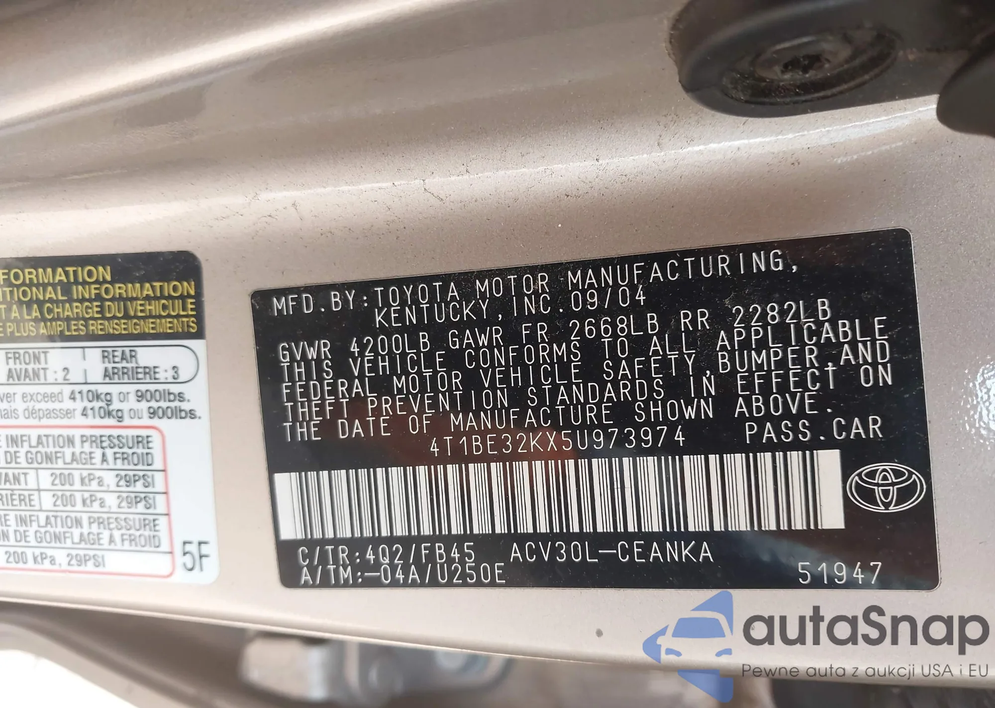 • VIN 4T1BE32KX5U973974