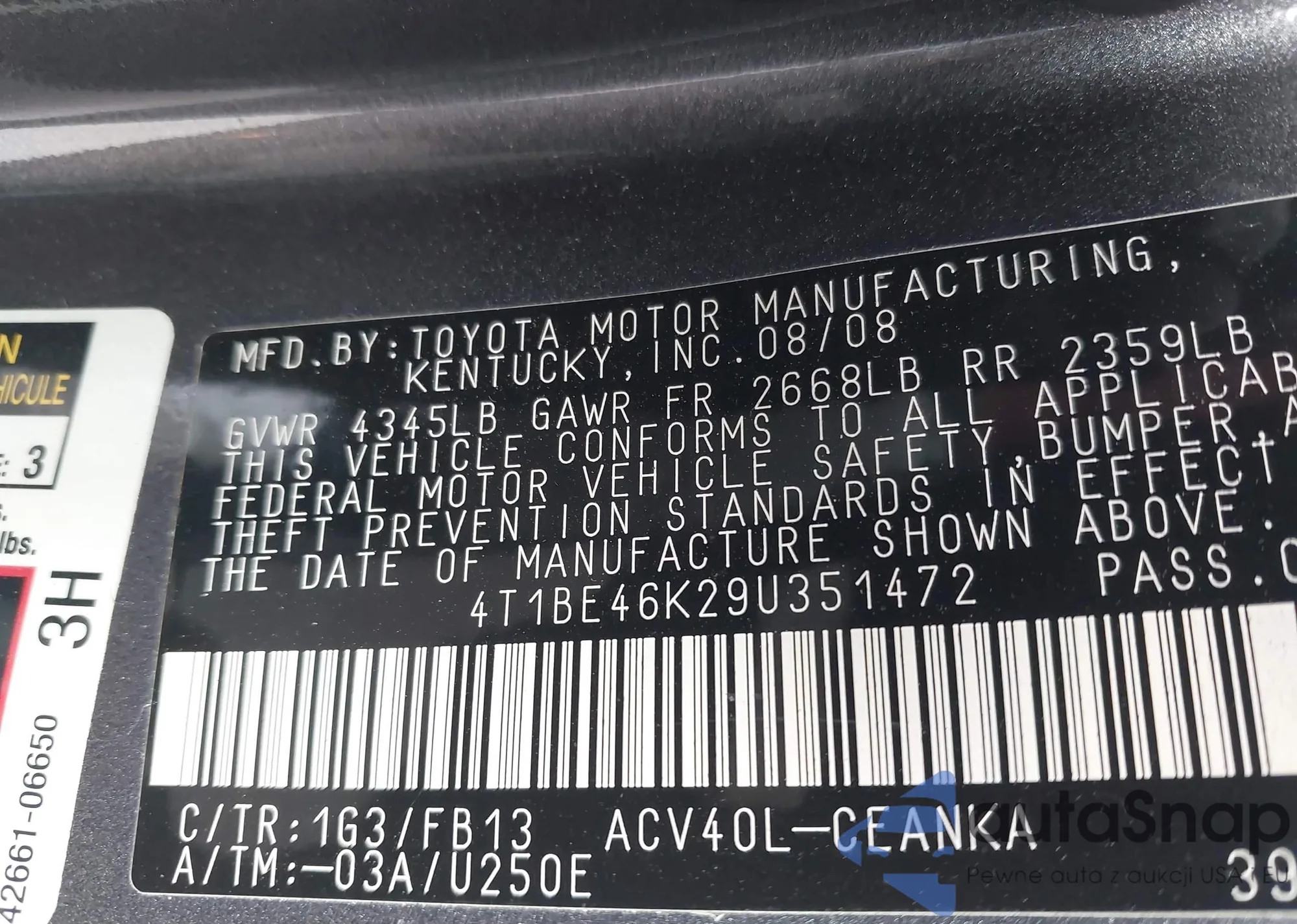 • VIN 4T1BE46K29U351472