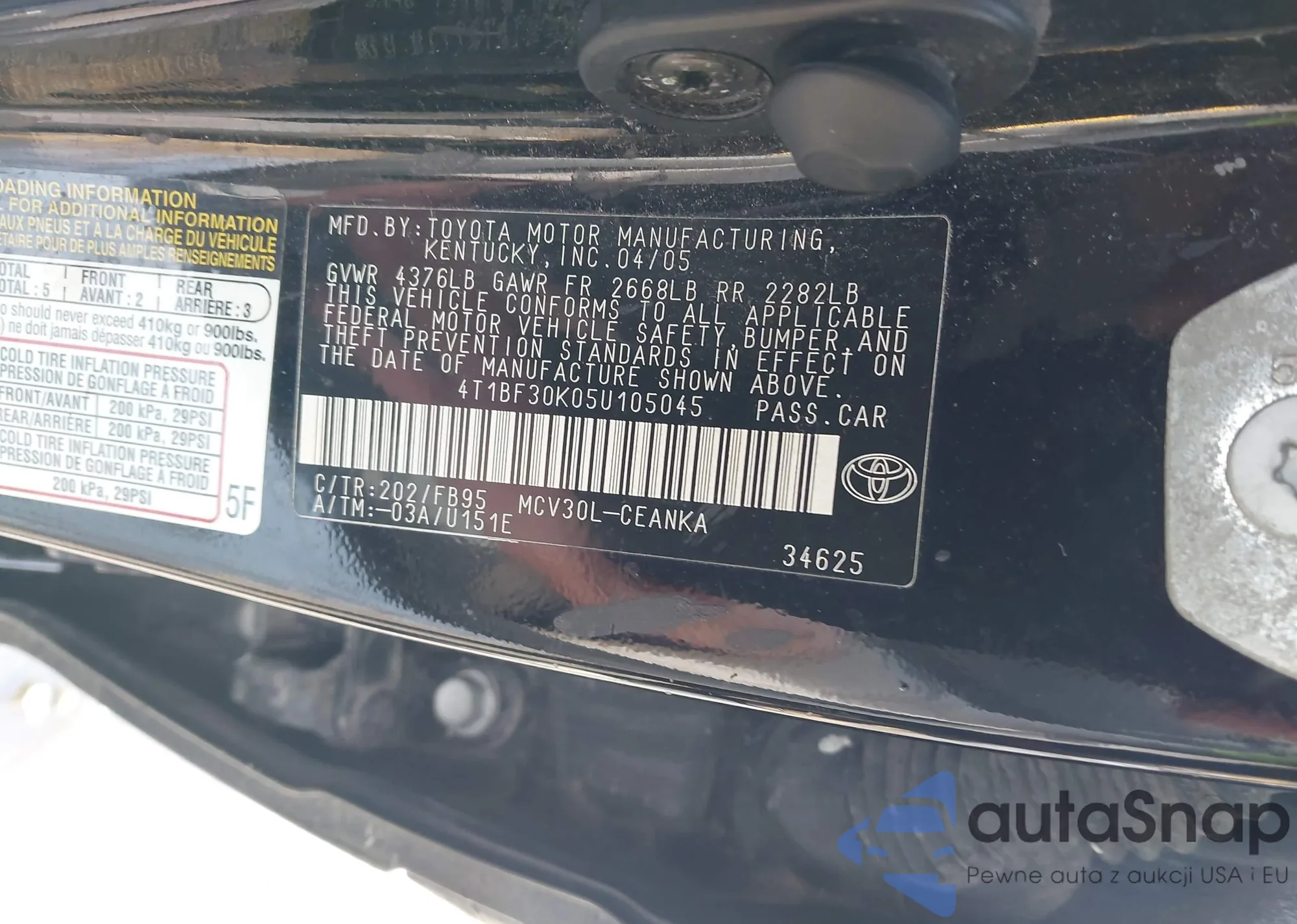 • VIN 4T1BF30K05U105045