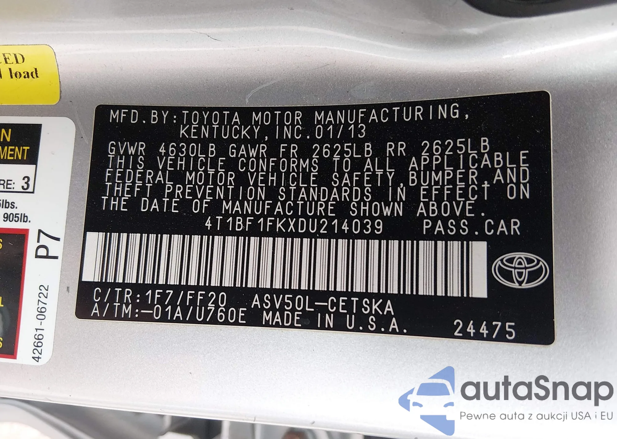 • VIN 4T1BF1FKXDU214039