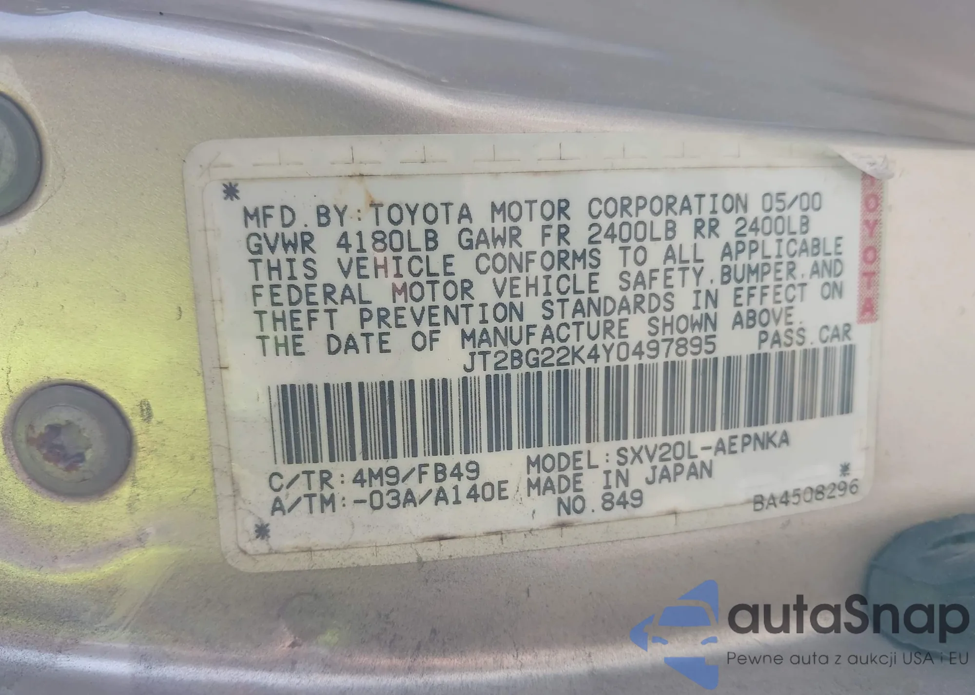 LOT: 44462934 VIN: JT2BG22K4Y0497895