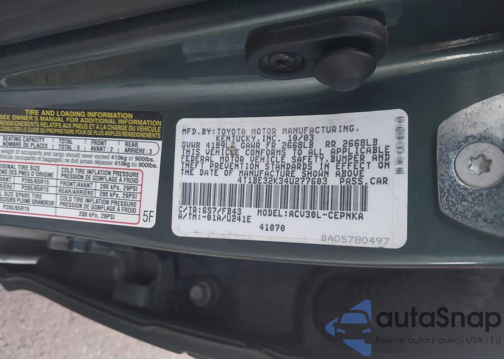 • VIN 4T1BE32K34U277603