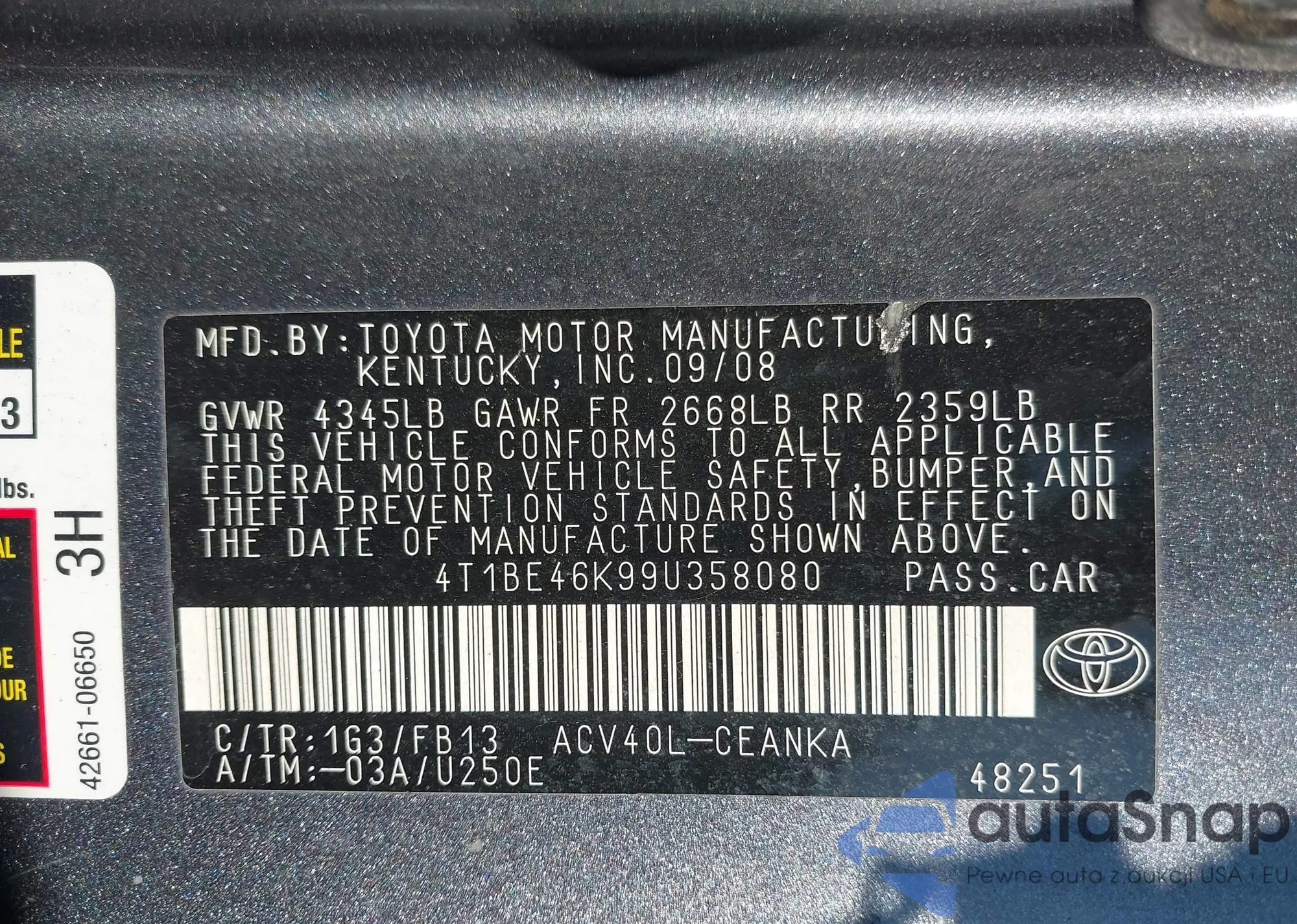 • VIN 4T1BB46K59U072106
