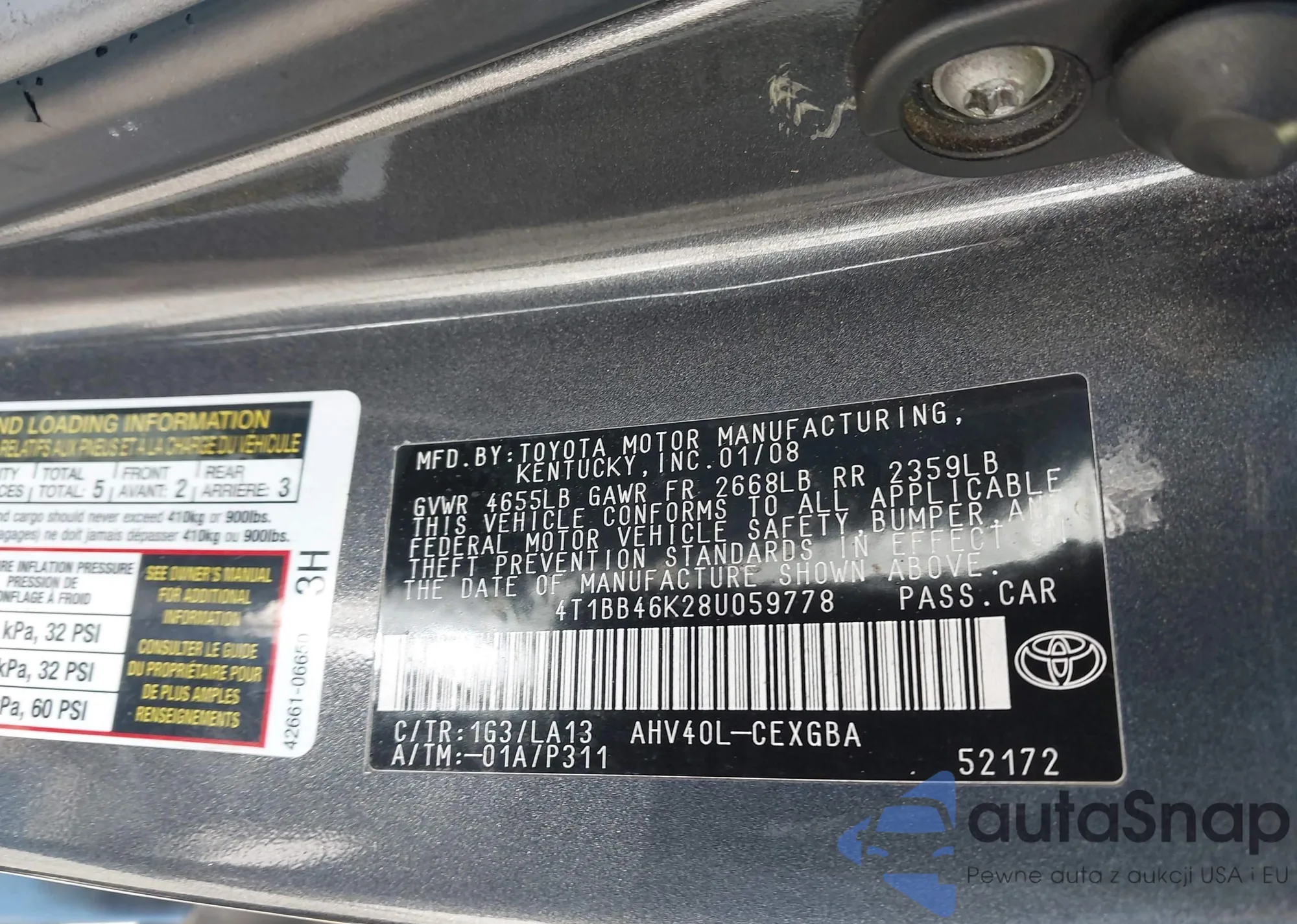• VIN 4T1BB46K28U059778