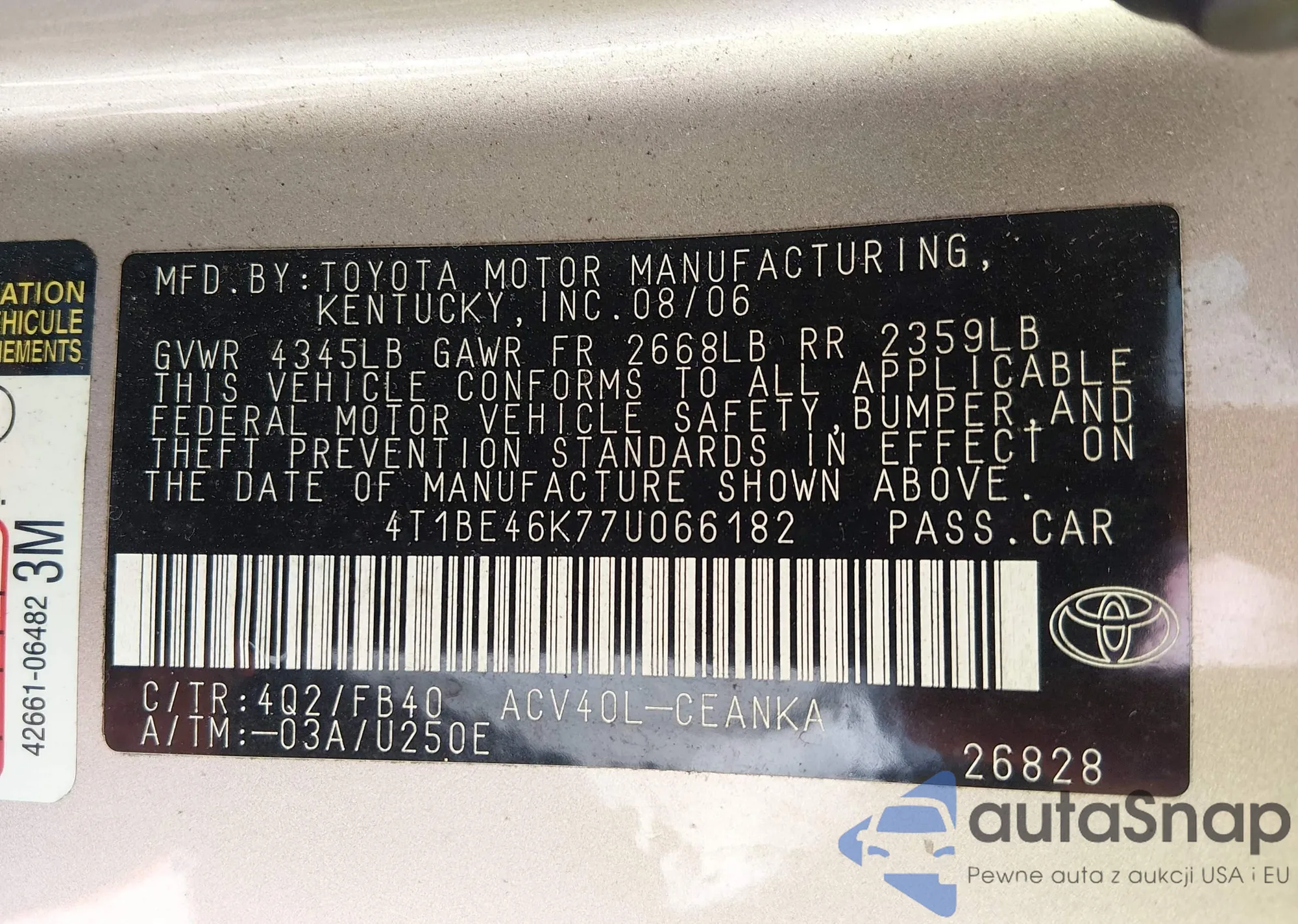 • VIN 4T1BF3EK4AU061036