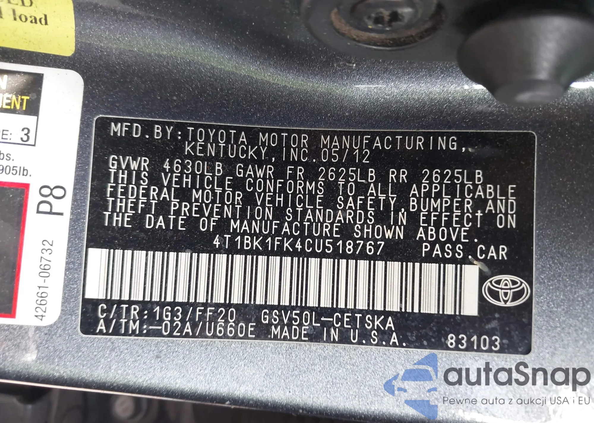 • VIN 4T1BK1FK4CU518767