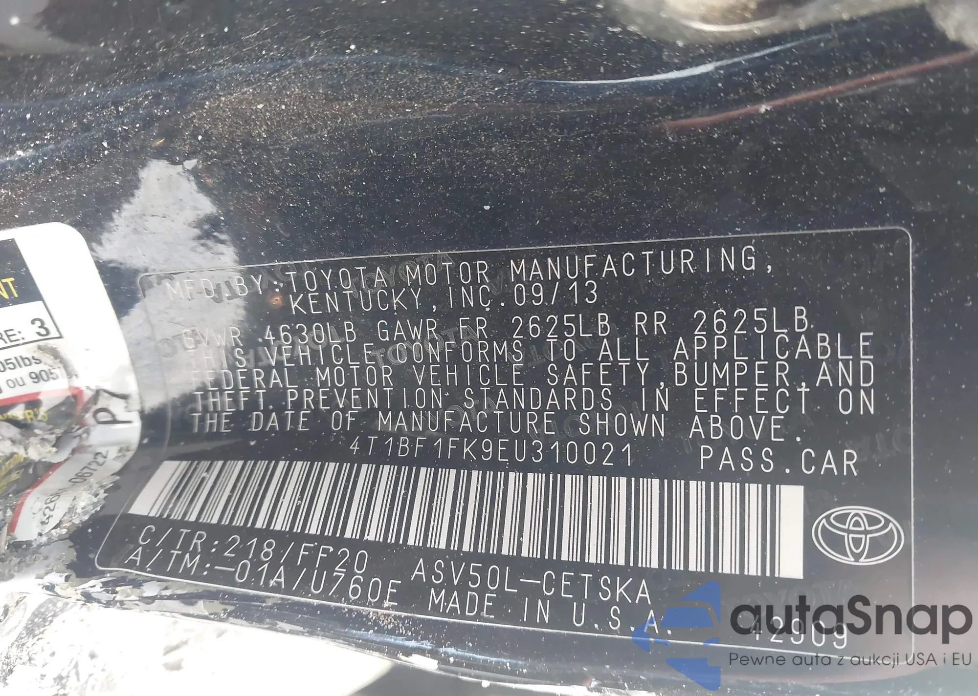 • VIN 4T1BF1FK9EU310021