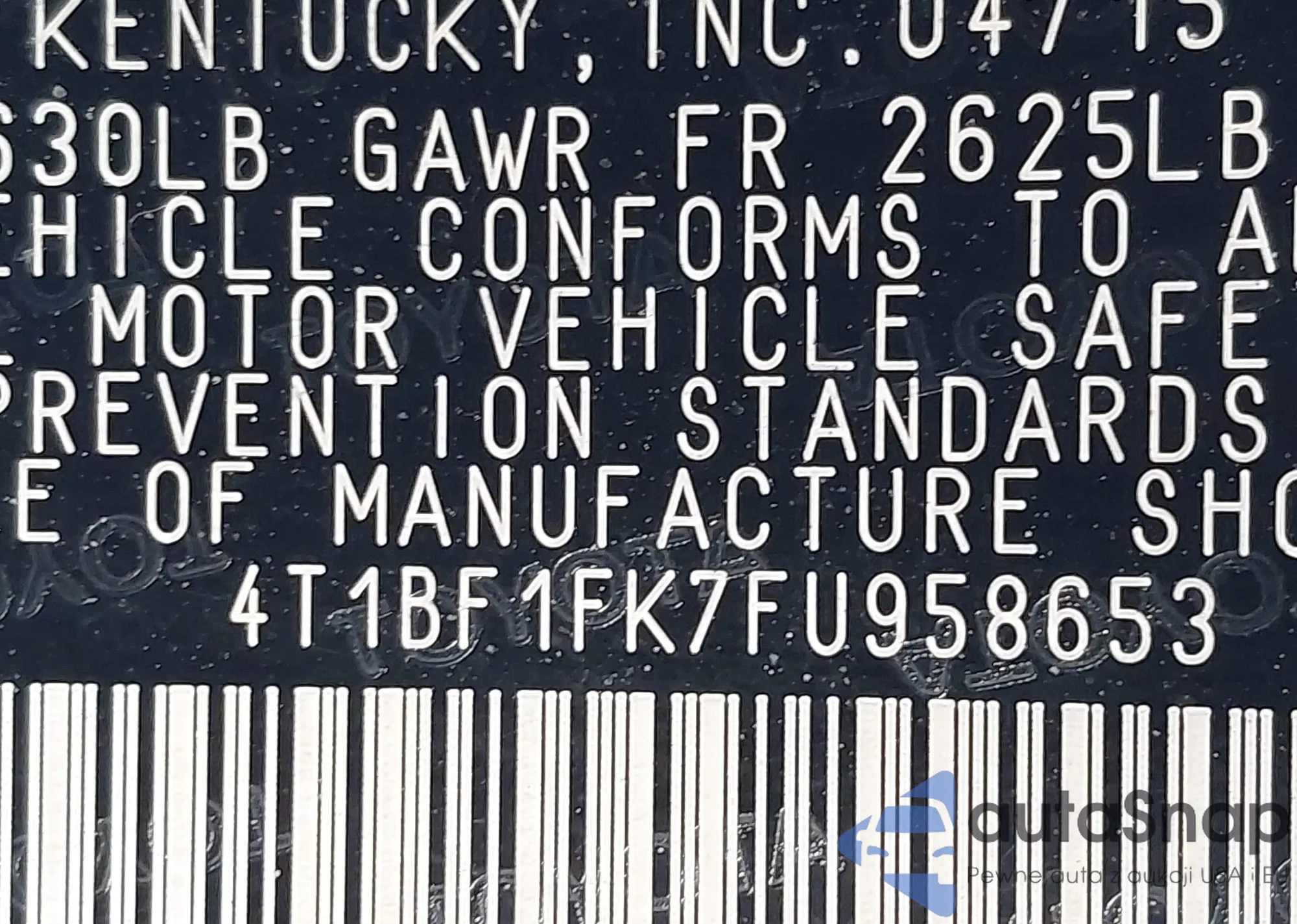 • VIN 4T1BF1FK7FU958653