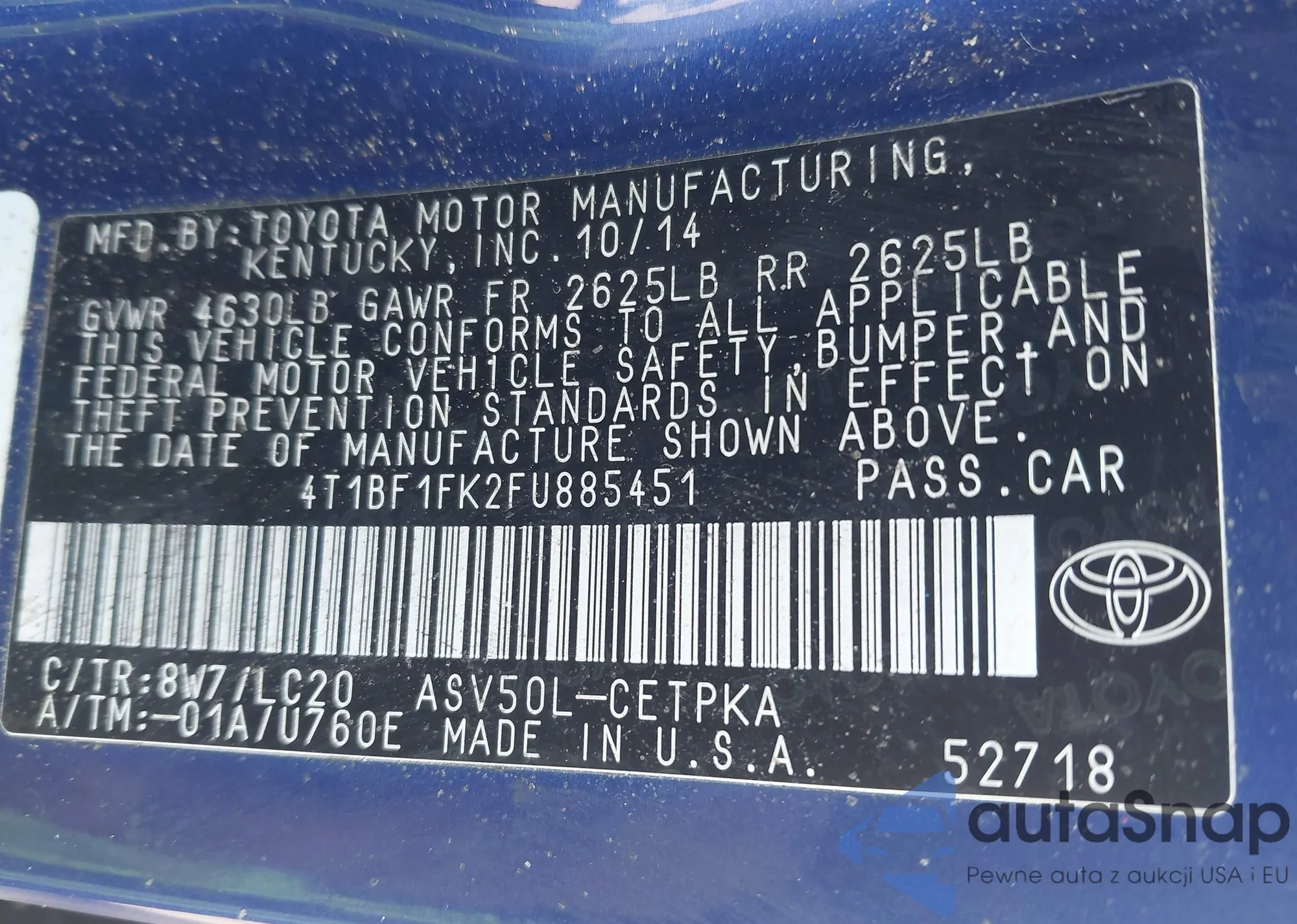 • VIN 4T1BF1FK2FU885451