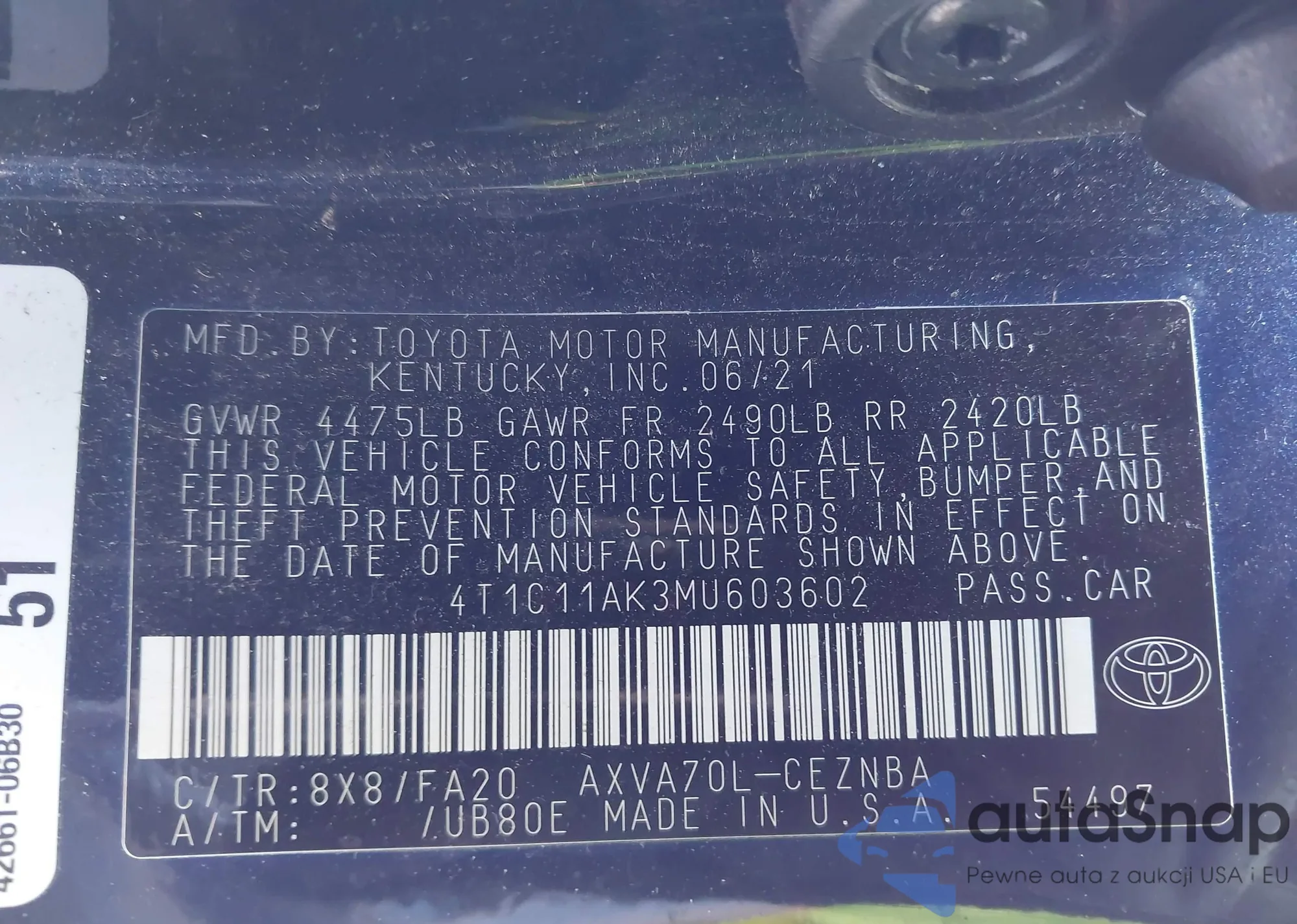 LOT: 44177024 VIN: 4T1C11AK3MU603602