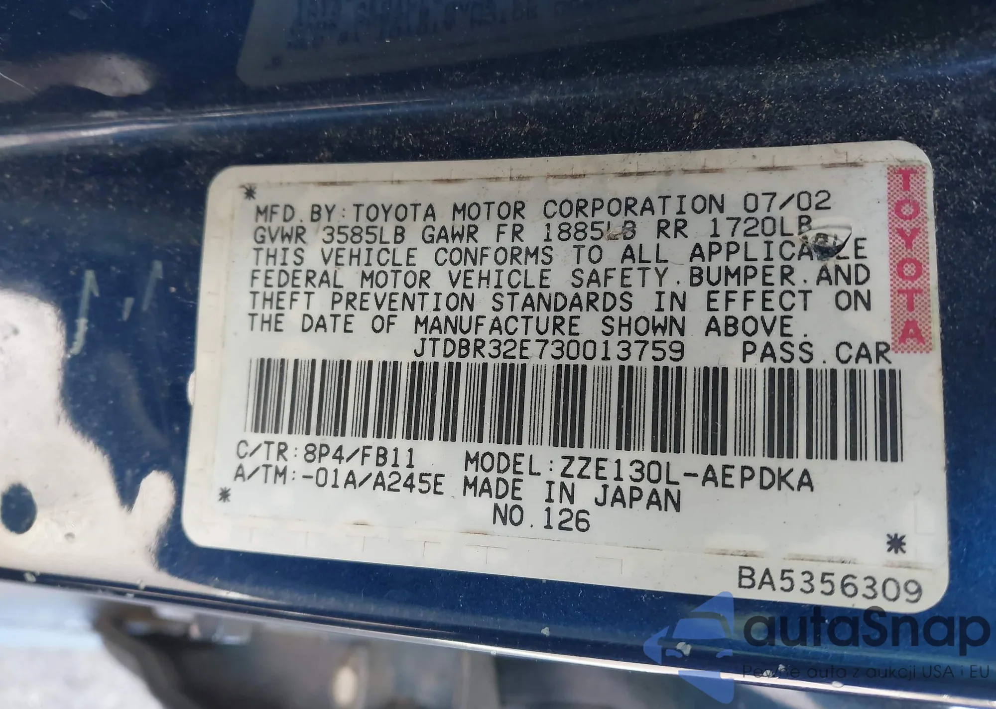 • VIN JTDBR32E730013759