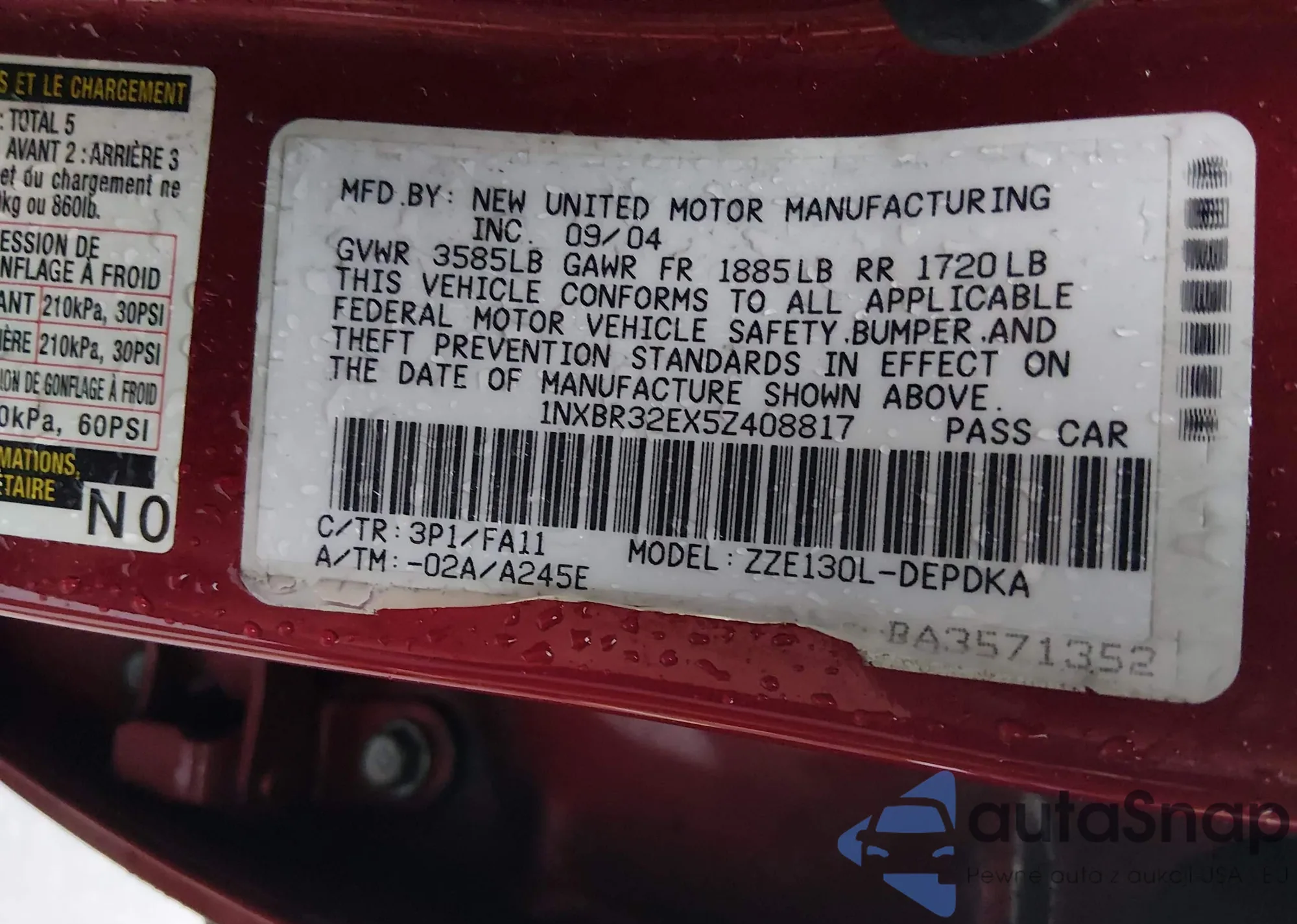 • VIN 1NXBR32EX5Z408817
