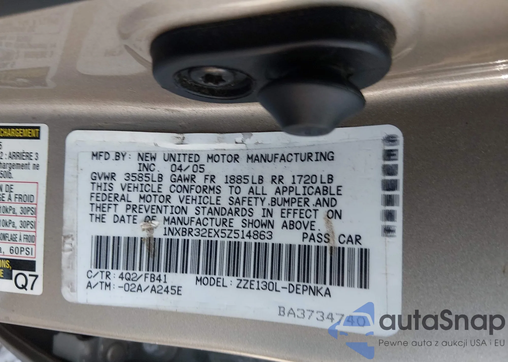 • VIN 1NXBR32EX5Z514863