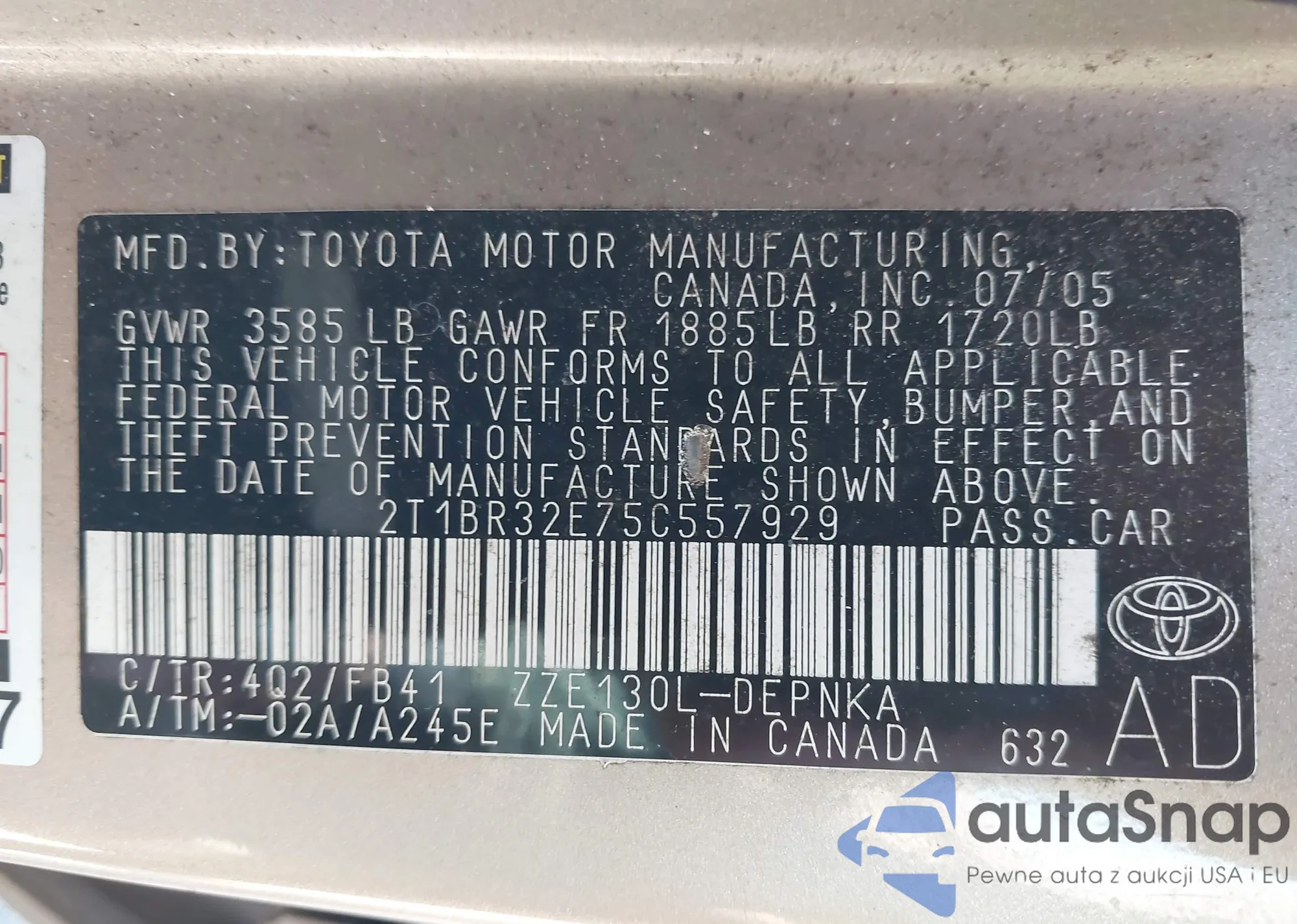 • VIN 2T1BR32E75C557929