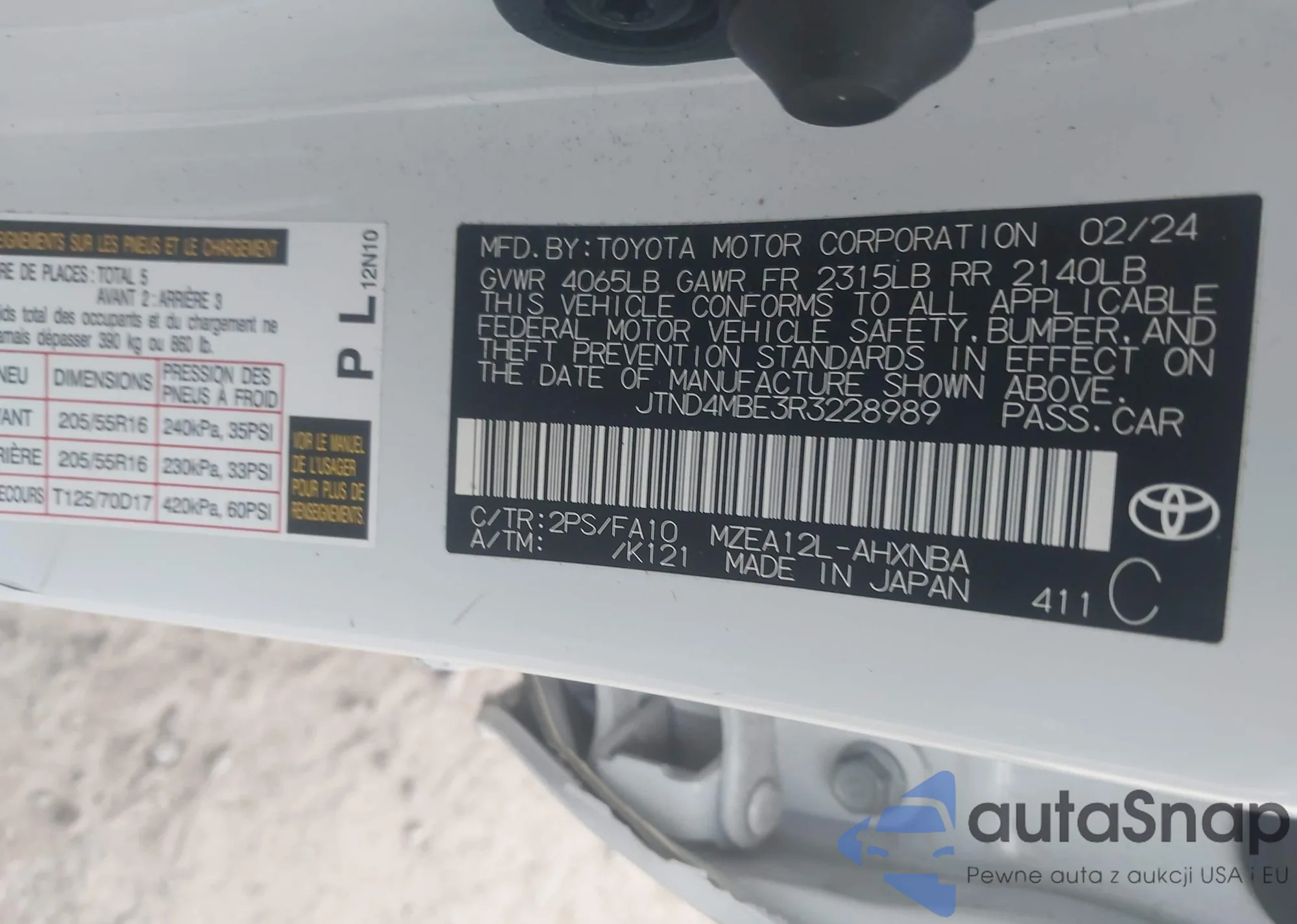 LOT: 43955509 VIN: JTND4MBE3R3228989
