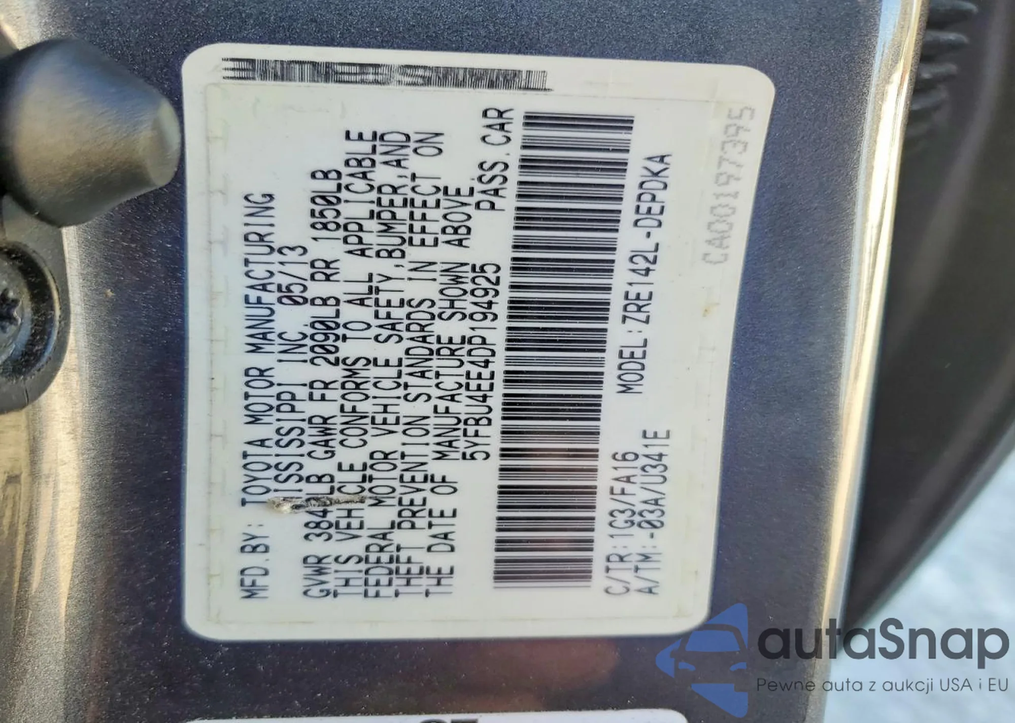 • VIN 5YFBU4EE4DP194925