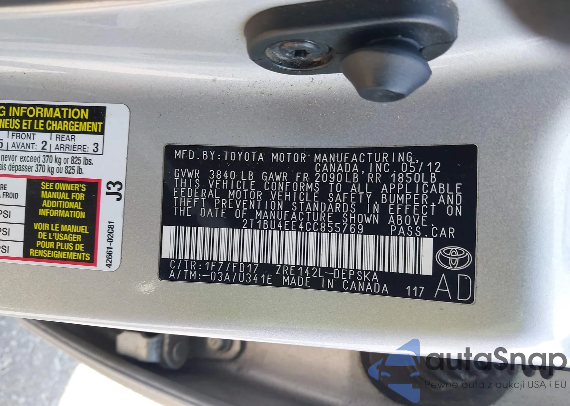 • VIN 2T1BU4EE4CC855769