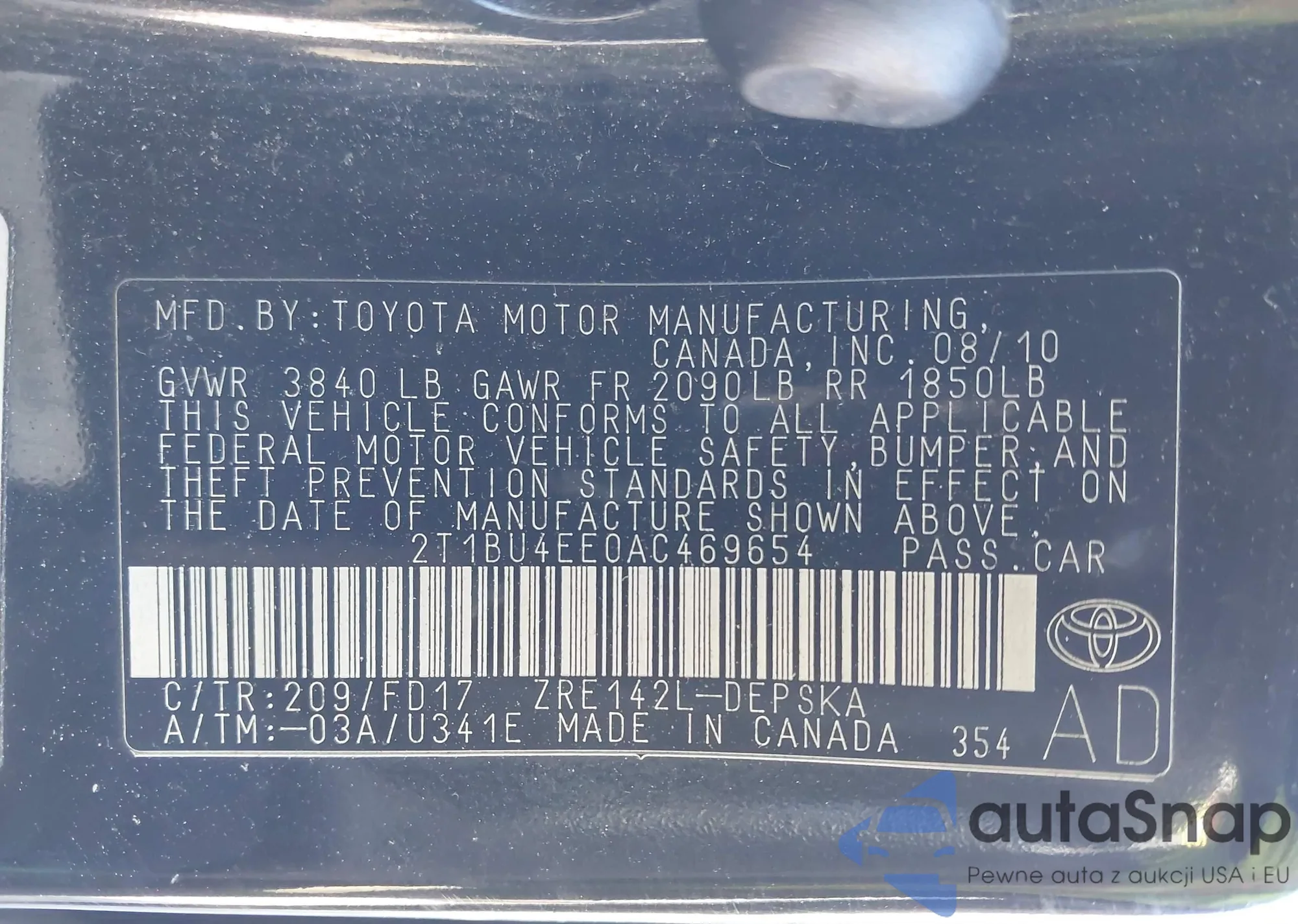 • VIN 2T1BU4EE0AC469654