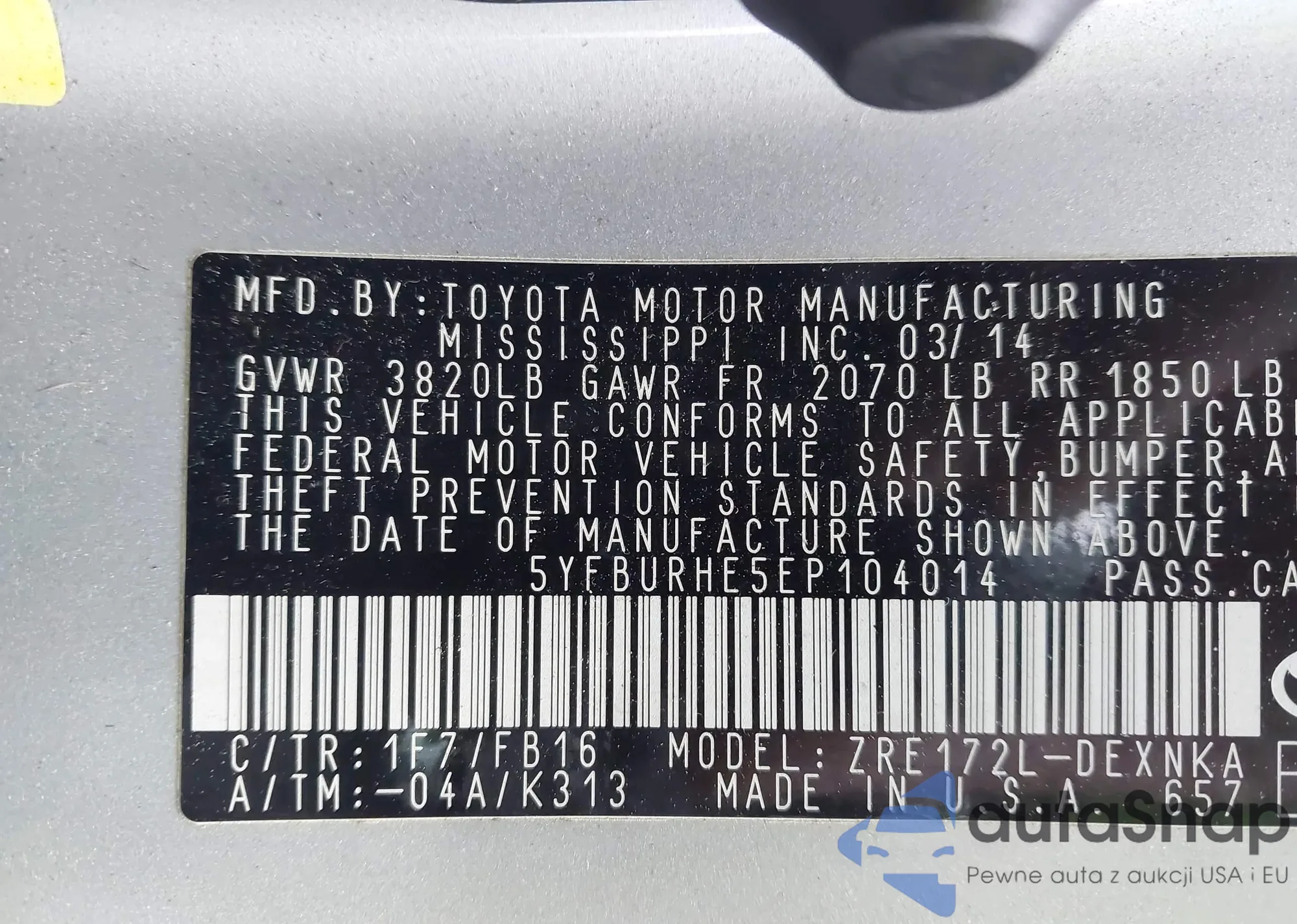 • VIN 5YFBURHE5EP104014