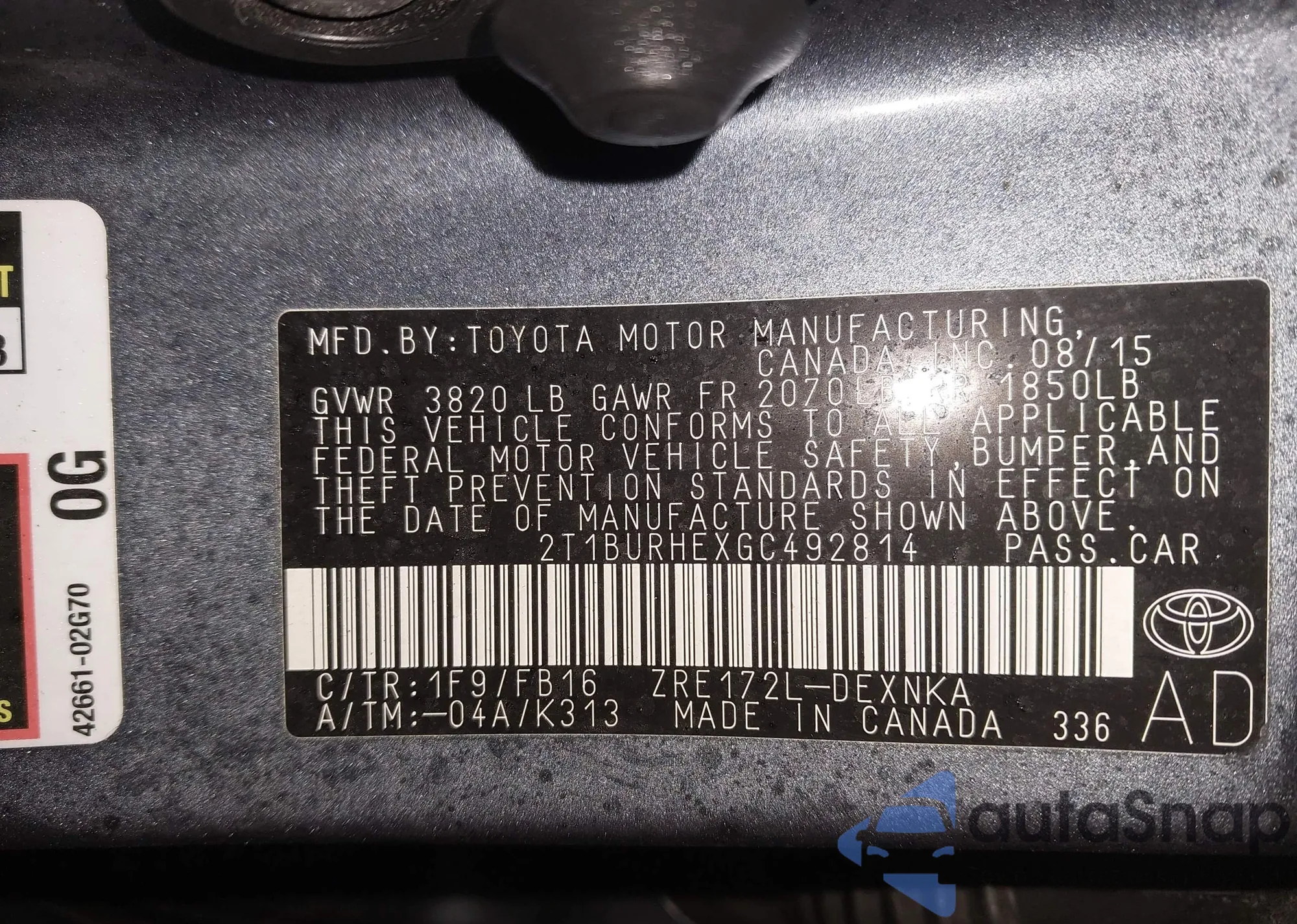 • VIN 2T1BURHEXGC492814