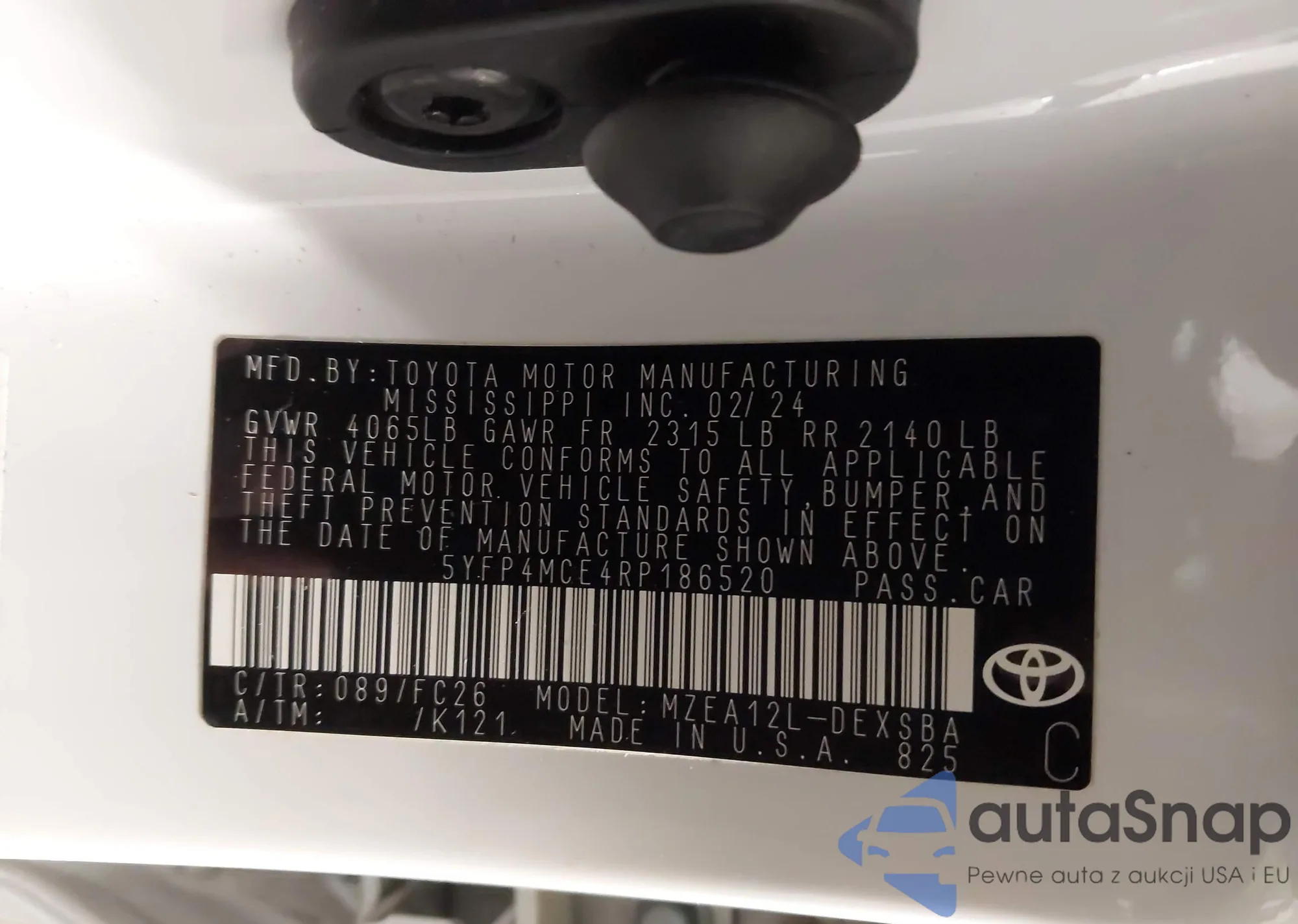 • VIN 5YFP4MCE4RP186520