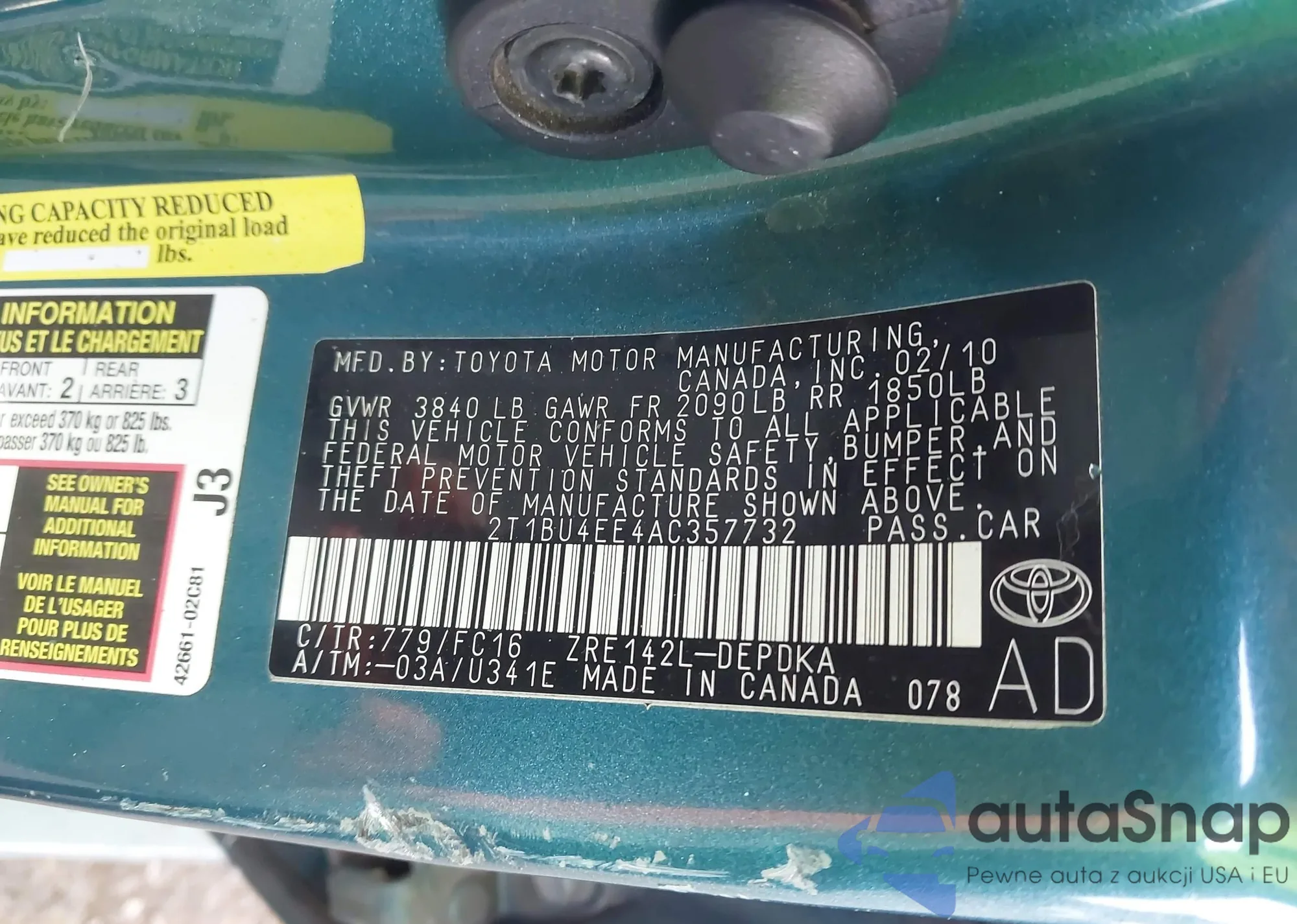 • VIN 2T1BU4EE4AC357732