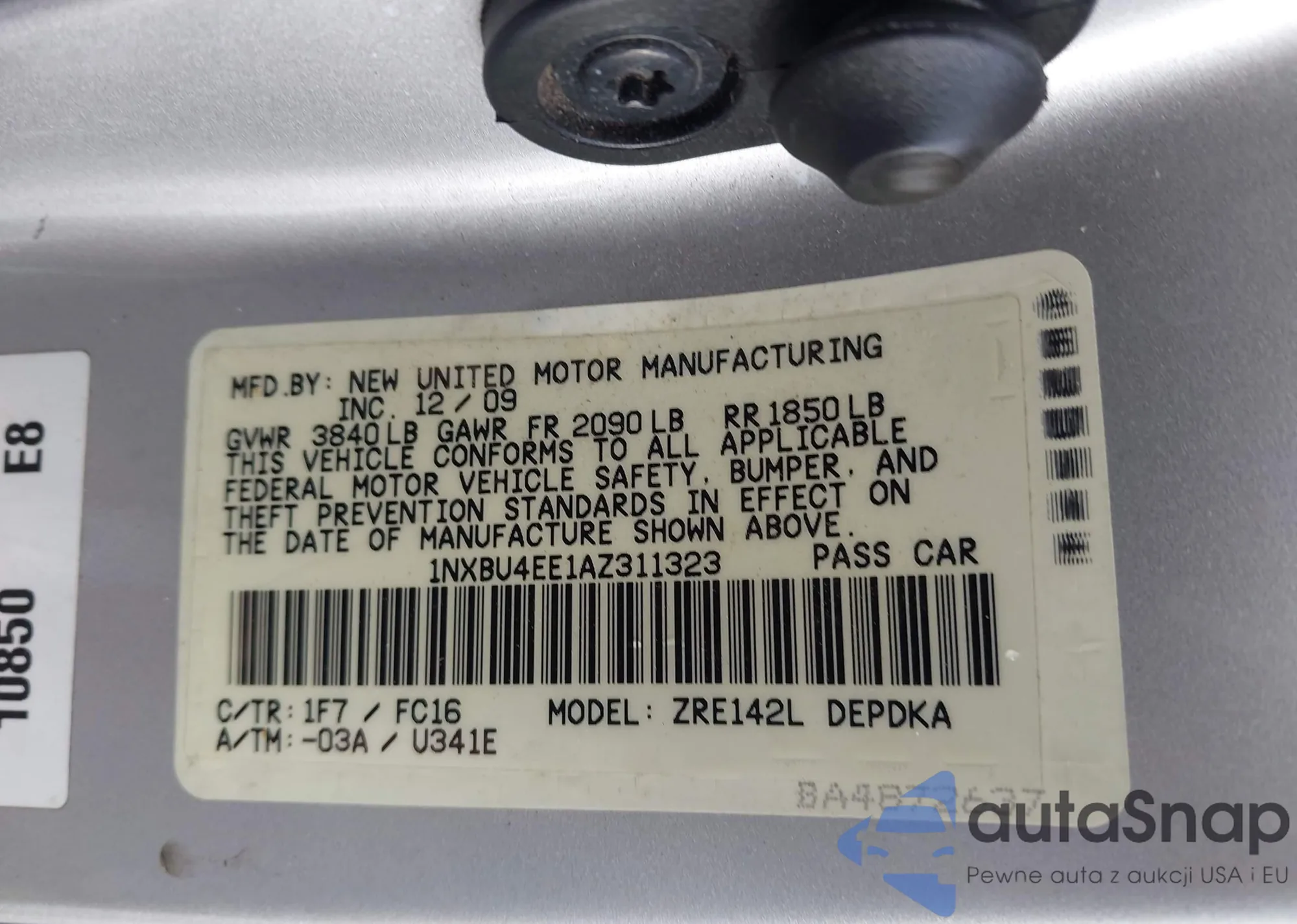 • VIN 1NXBU4EE1AZ311323