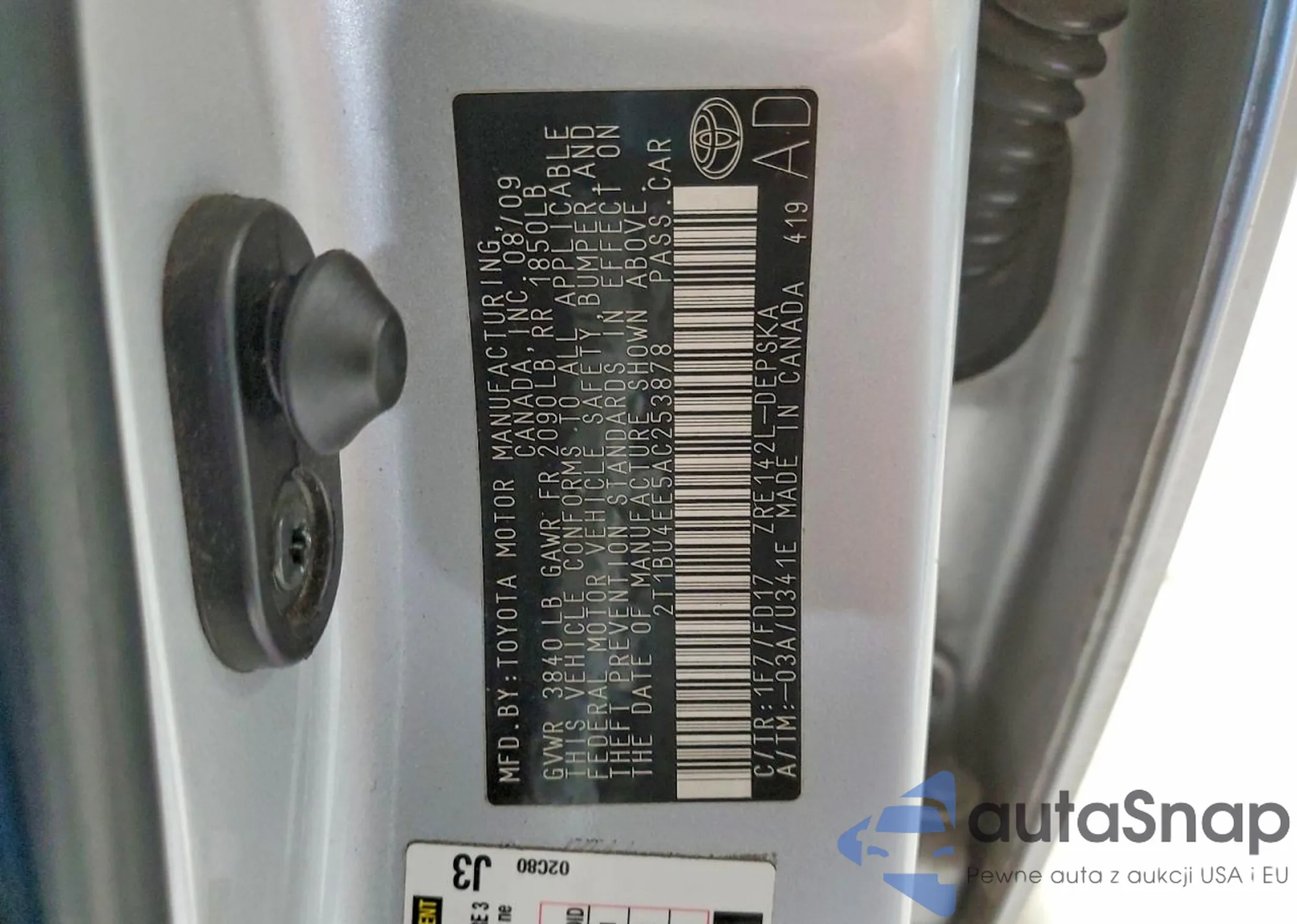 LOT: 44298552 VIN: 1NXBU40E39Z046648
