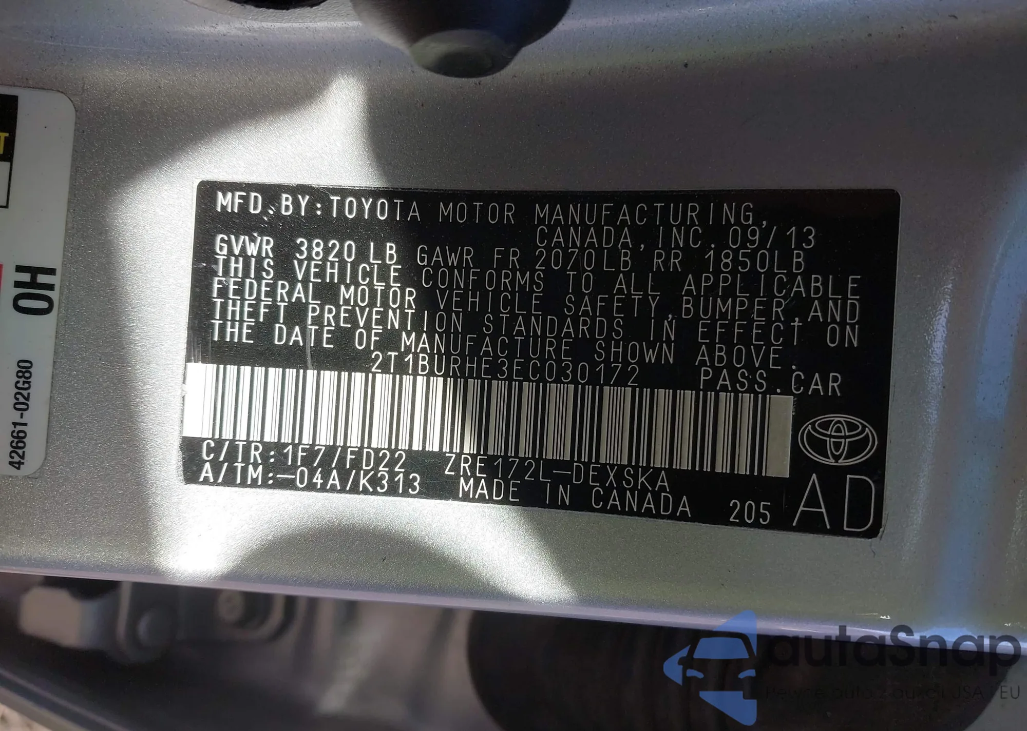 • VIN 2T1BURHE3EC030172